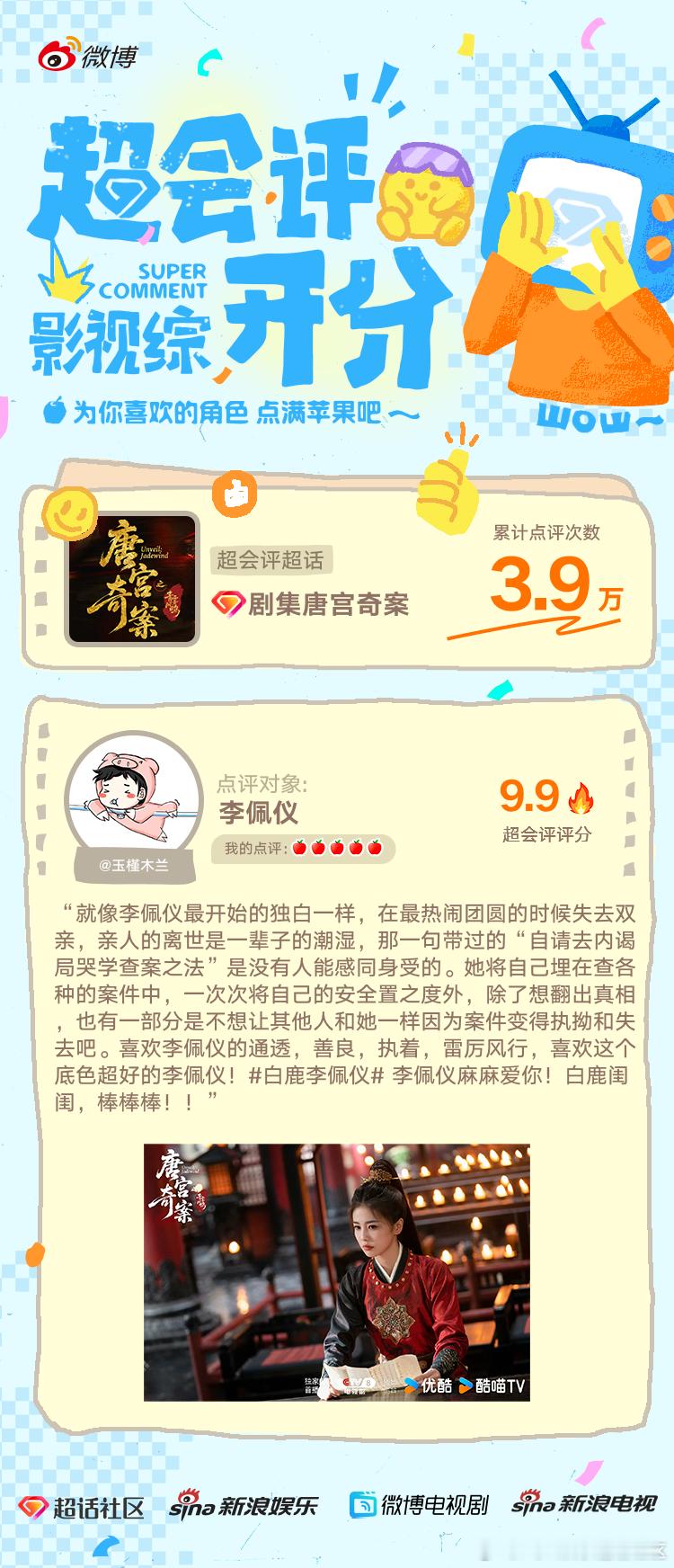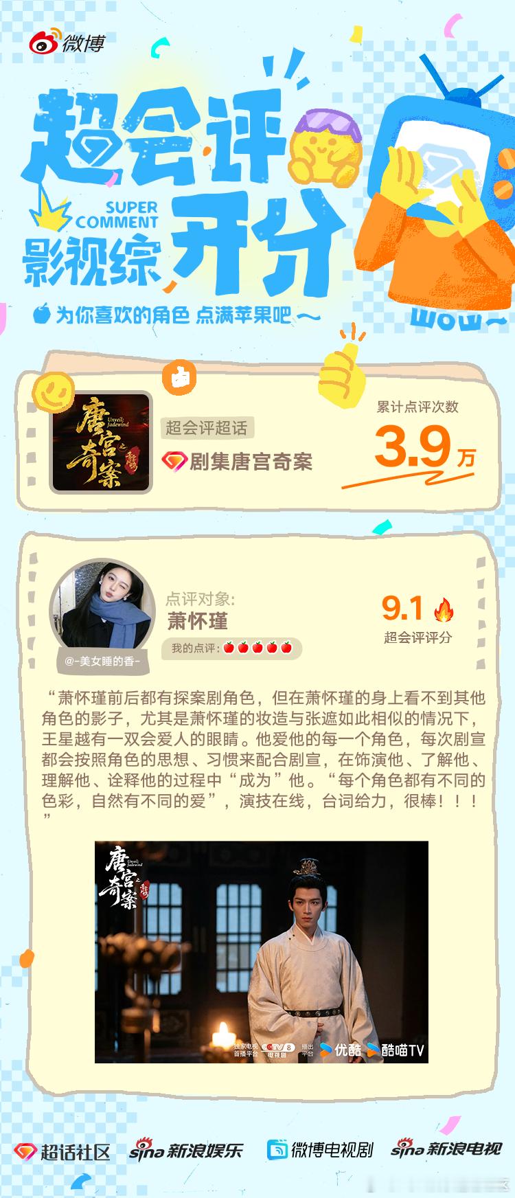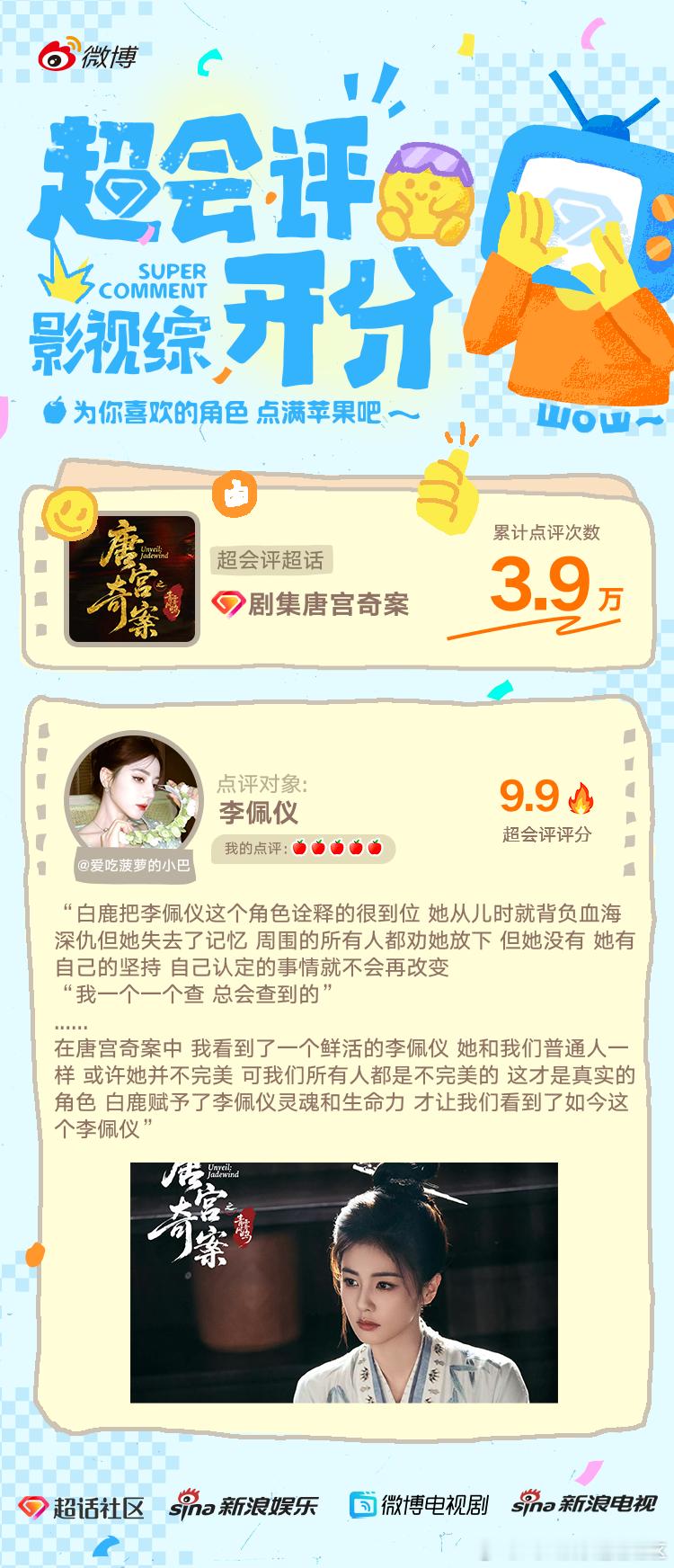 更多新剧超会评即将上线,欢迎uu们输出对角色的优质点评,活动发起请关注每月月初公布的活动PR!