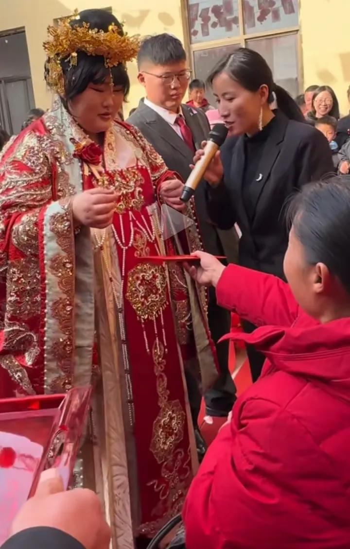 大衣哥女儿朱雪梅声音甜美很好听,在婚礼改口环节,亲切喊:“爸爸,妈妈,请喝茶。”