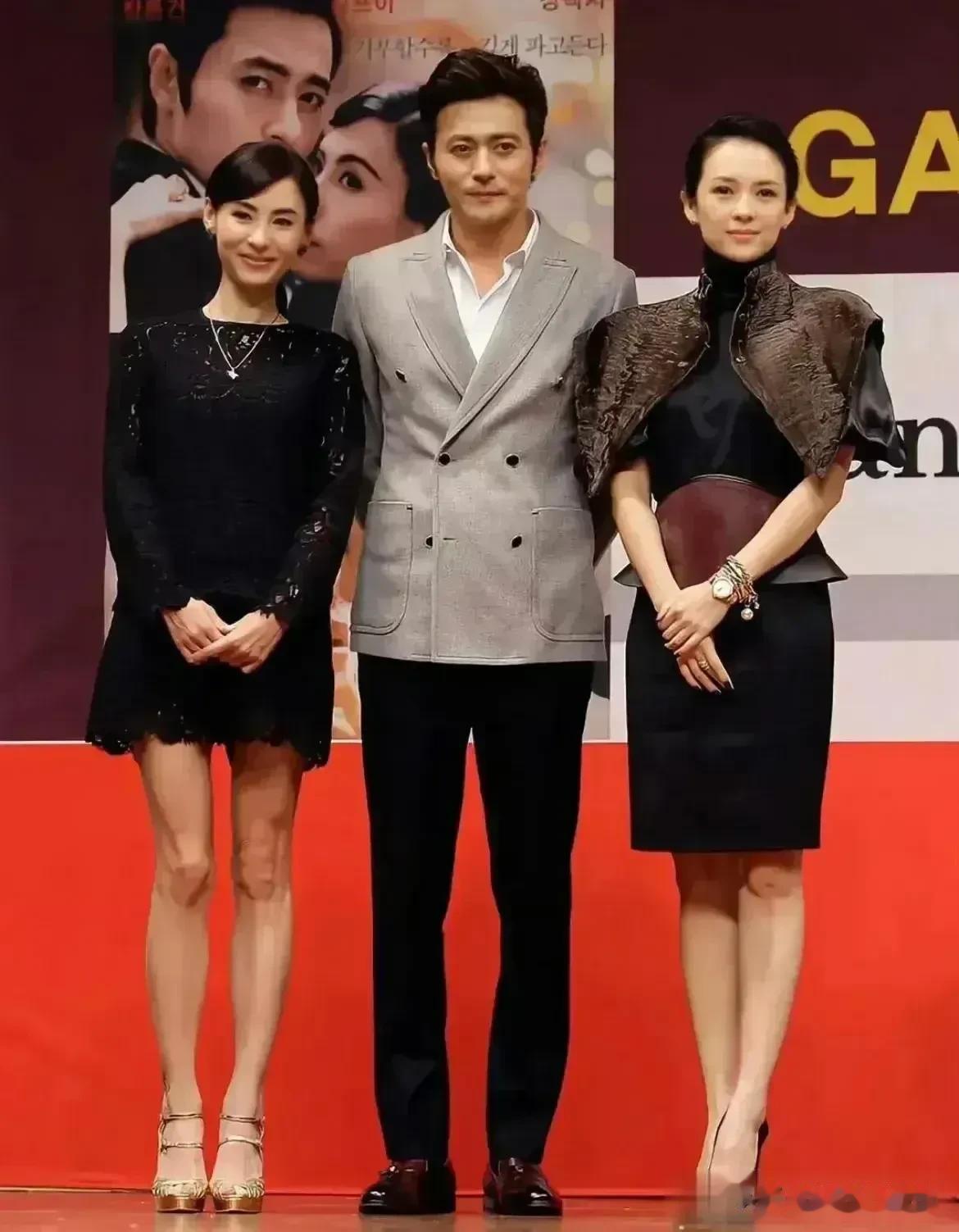 章子怡、张柏芝和一个帅哥的合照。 照片中的章子怡,稳重大方,高贵典雅,气质优雅,给人一种高贵出尘的感觉。 而张柏芝则像一个邻家少女,美丽活泼,青春靓丽。 章子怡和张柏芝给人是两种不同的感觉,一静一动,差别很明显。 两人都有不同的美,但非要比较的话,我觉得章子怡要稍胜张柏芝一筹。 中间这个帅哥左拥右抱,有人认得他是谁吗?
