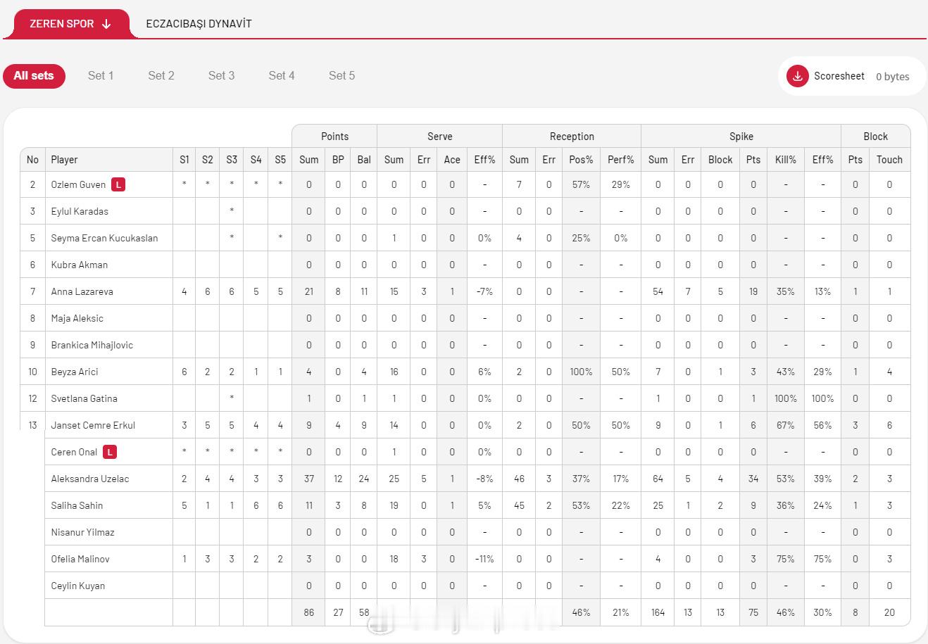【土超女排乌泽拉奇37分 泽伦竞技3-2力克伊萨】国际排坛战报速递2月14日,土超女排第22轮,泽伦竞技主场3-2(25-22/27-25/17-25/27-29/15-13)力克伊萨奇巴希,反超对手升至联赛第三。乌泽拉奇37分(64扣34中)、拉扎列娃21分,卡拉库尔特23分、斯蒂西亚克22分、厄尔科克16分、雷特克12分。