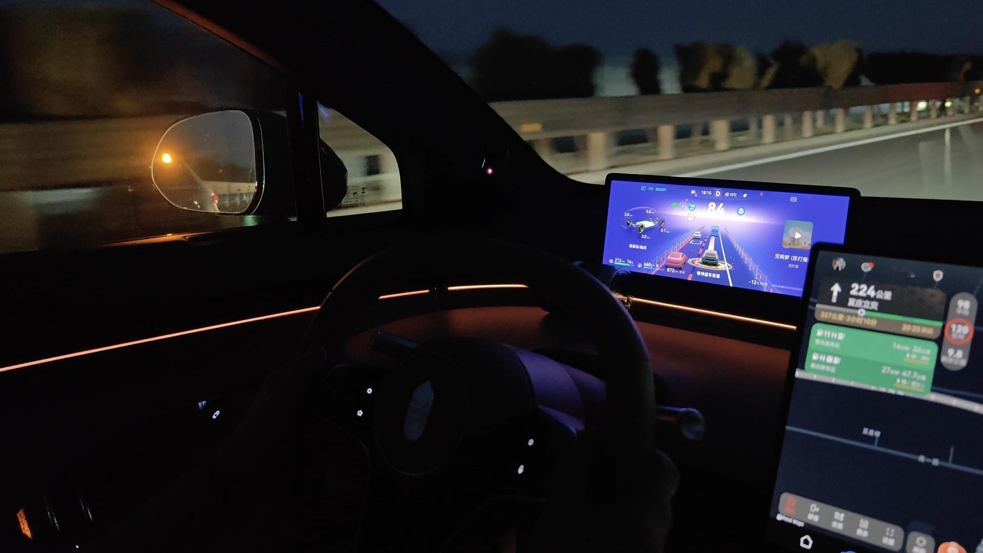 这次ADS4.1有了一个新的解法,首先,它整体还是倾向于积极右侧变道的,这个情景解法就是华为把超车逻辑优化了,系统可容许的变道车距非常近,速度也很快,跟人基本一样,基本后侧的车脱离盲区监测的瞬间,你的车就能插进去,所以,当你右侧超车被右侧更慢车挡住时,ADS4.1可以选择车缝再变回来,只要侧后车不特意压缩车距不故意不让你过,基本拦不住ADS4.1的,实际体感是高速路况下,有个一个半身位就能穿插进去。
