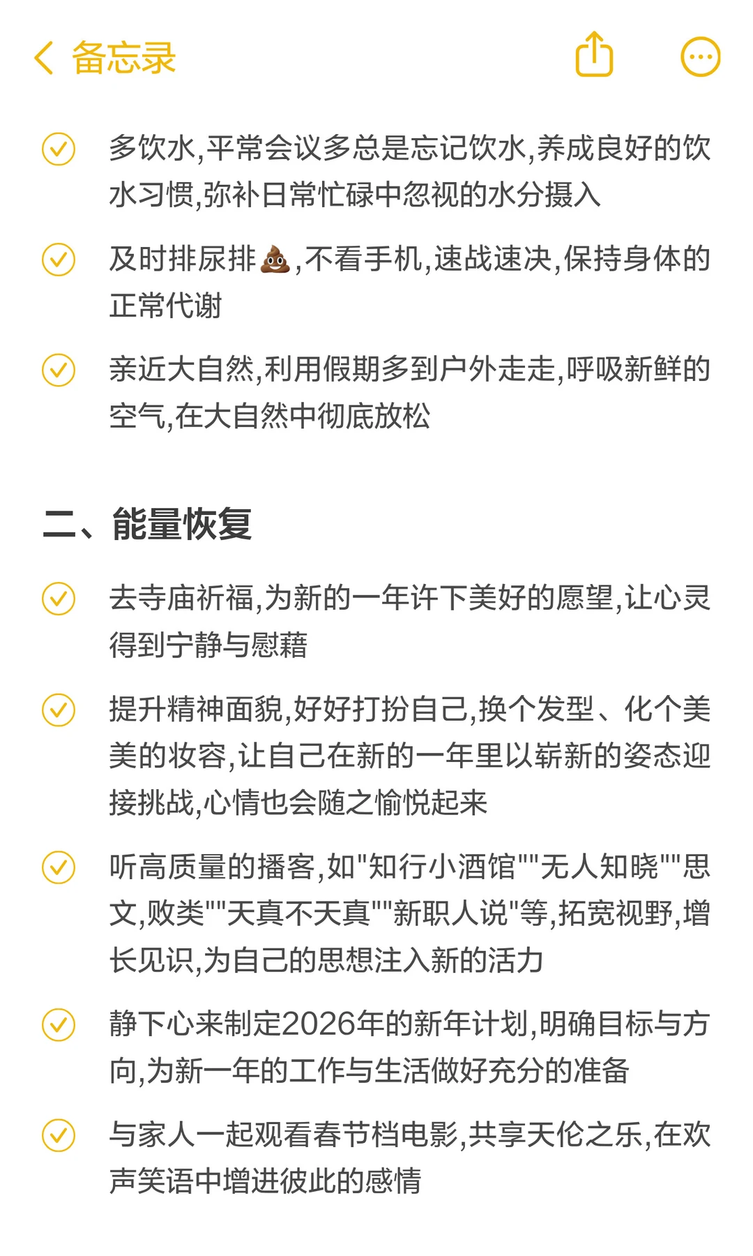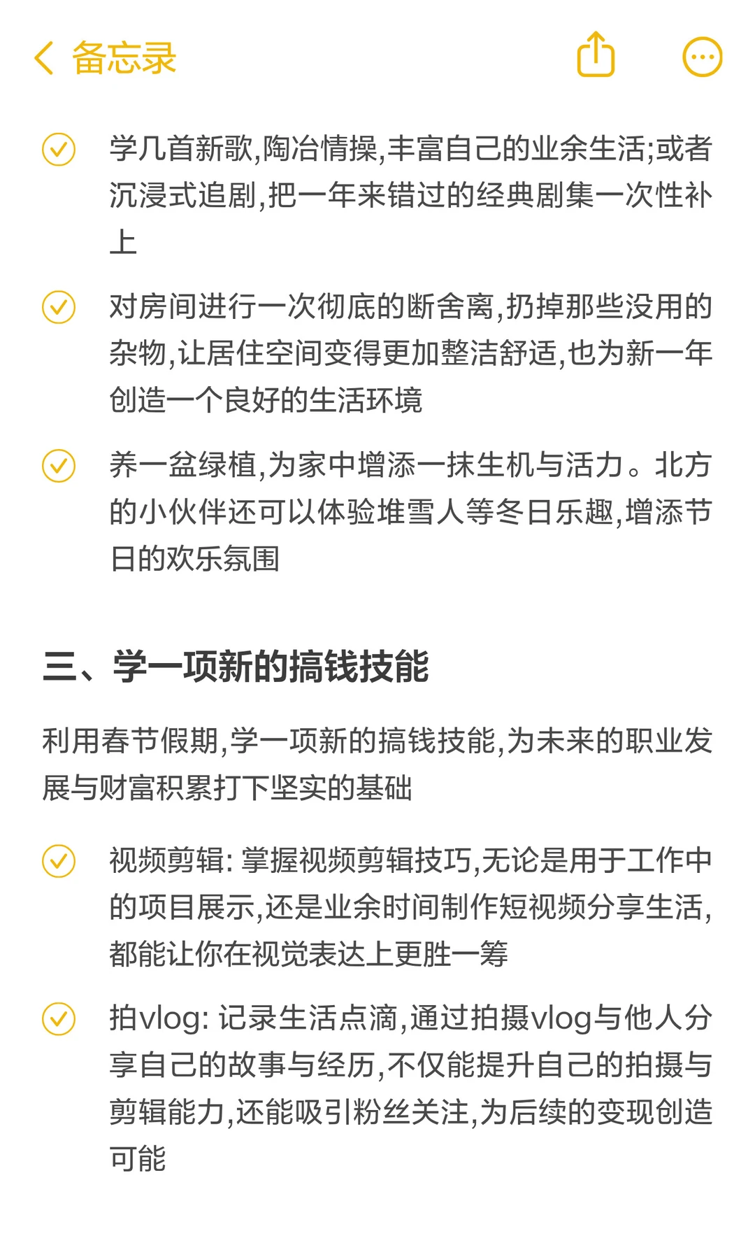 今年春节,许多大厂同事从2月14日(周六)起便开启了假期模式,直至初九(2月25日)才回归工作岗位,中间足足有12天的悠长假期。何不充分利用这宝贵的时光,让身体与精神都得到深度的休整与提升呢? 这里从春节养生、能量恢复和学习一项搞钱技能三方面计划,充分利用时间,让身体得到充分的休养,让精神得到深度的滋养,让技能得到显著的提升,更好的迎接新一年的挑战与机遇~