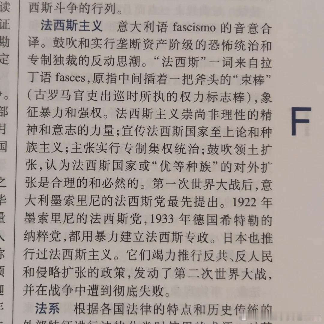 不同年代辞典中的“法西斯主义”