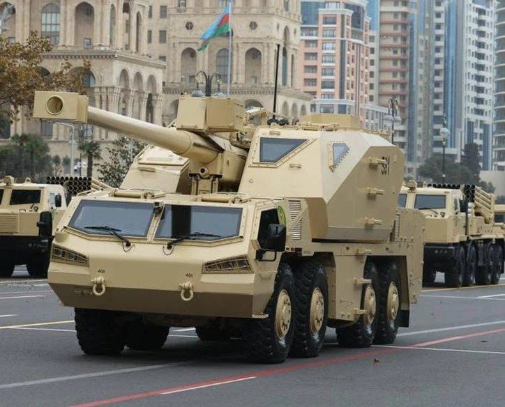 飞扬军事 阿塞拜疆武装部队列装的两款新型155毫米自行榴弹炮,分别是塞尔维亚NORA B52 NG与捷克DITA。