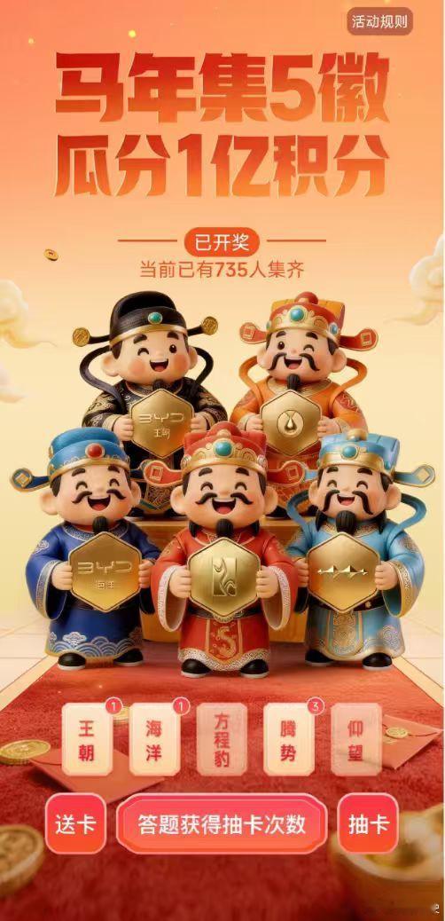 今年红包太多了,比亚迪也放大招啦,马年集徽享好礼,瓜分1亿积分!太壕横了!只要集