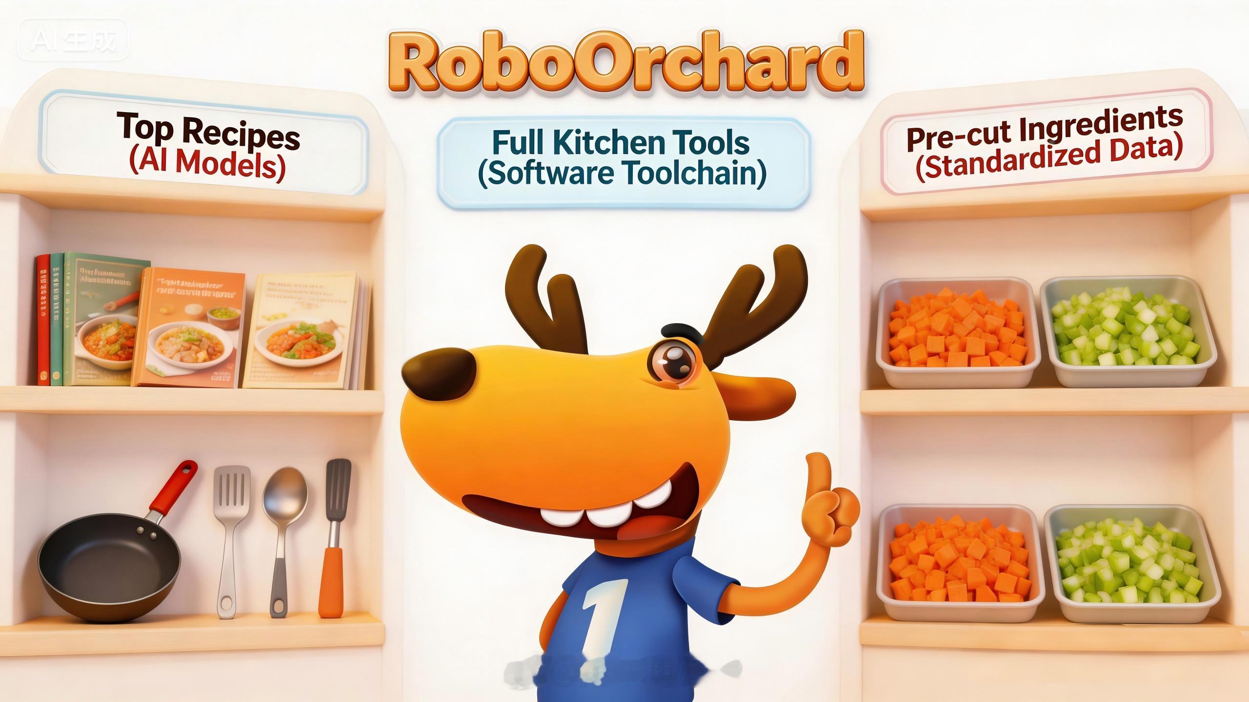 以前想开发一个聪明的机器人,门槛高到离谱。现在地平线不仅把“大脑”的核心技术方案(模型)开源了,还附带了一个“米其林三星后厨”级别的全套工具,名叫 RoboOrchard这后厨里有啥?顶级菜谱(算法模型本身)全套厨具(训练和部署模型所需的软件和工具链)连配菜都切好了(标准化的数据格式和处理流程)