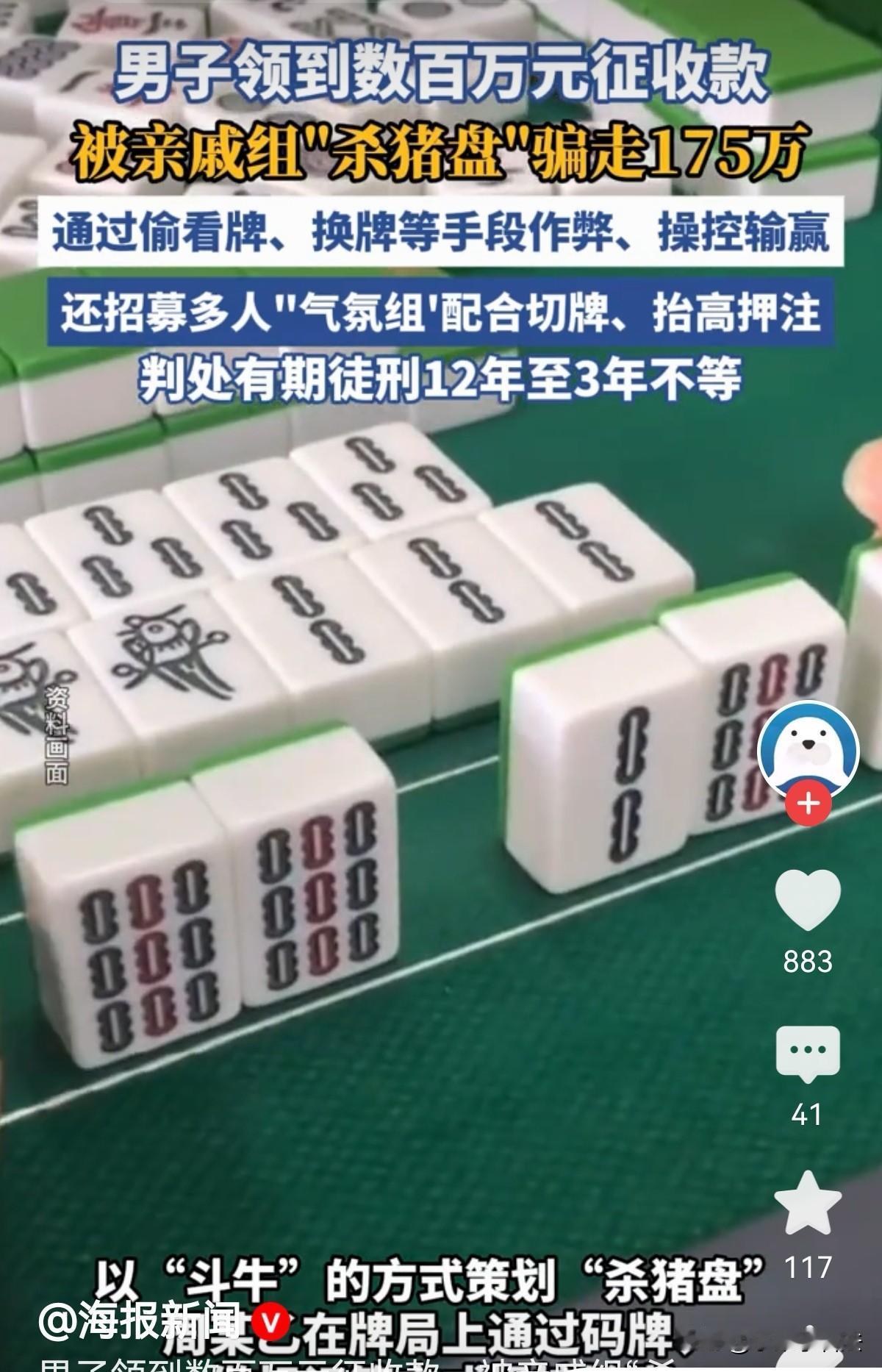 “知人知面不知心!”湖南长沙,男子拆迁获得几百万,与他经常一起打牌的亲戚得知后,心生贪念,竟联合他人以“斗牛”的方式策划“杀猪盘”。通过偷看牌、换牌等手段配合作弊。还找多人组成“气氛组”,刺激他加大赌注。5个月时间设局5次,骗男子175.12万元,其中60万元诈骗未遂。得知真相,男子难以置信!网友:十赌九诈!远离大赌博! 唐先生原本是个再普通不过的普通人,日子过得安稳平淡。 直到家里迎来征收,一笔数百万元的补偿款打到账户上,唐先生乐坏了,想着这笔钱可以用来改善家人生活,为未来存下坚实的保障,整个人都洋溢着喜悦。 可他怎么也没想到,这笔天降的财富,竟成了引狼入室的诱饵。 唐先生平时喜欢闲暇时和亲戚朋友凑在一起打打牌,放松消遣。 自从有了这笔拆迁款,他走路都感觉飘飘的,脸上笑意盈盈,打牌的手都带风。 经常和他一起玩牌的亲戚周某甲知道他家拆迁,问他得了多少拆迁款?这么高兴,玩牌都大方多了? 唐先生觉得周某甲是亲戚,都是知根知底的熟人,也没任何隐瞒,竟一五一十地告知了实数。 周某甲得知唐先生得了几百万巨额拆迁款,坐不住了,贪婪的念头瞬间占据了内心,一门心思盘算着如何把这笔钱弄到自己手里。 很快,周某甲找到周某乙,两人臭味相投,当即一拍即合,专门针对唐先生策划了一场以“斗牛”为形式的牌局“杀猪盘”。 他们深知唐先生对亲戚毫无防备,便以亲友聚会、轻松娱乐为理由,一次次热情地邀请唐先生打牌。 毫无戒心的唐先生没有丝毫怀疑,乐呵呵地赴约,他压根不知道,自己从踏入牌局的那一刻起,就掉进了别人精心编织的陷阱里。 为了让骗局天衣无缝,这个团伙可谓是煞费苦心。 他们先让唐先生小赢几把,吊起他的胃口,然后周某乙负责在牌桌上动手脚,偷偷给纸牌做标记、提前码好牌,牢牢掌控着每一局的输赢。 周某甲又拉拢了严某加入,让其在牌桌上偷看牌、暗中换牌,全程精准配合作弊。 不仅如此,周某乙还专门找了一群人充当“气氛组”,在牌桌上故意起哄、抬高押注,不停用言语刺激唐先生,引诱他一次次加大赌注,越玩越大。 在这场全是套路的牌局里,唐先生也蒙头转向,刚开始挺好的啊?怎么运气越来越不好?输了几把钱,心里还想着下一把能翻本。 每当他萌生退意时,身边的“亲戚”和“牌友”就会轮番劝说,用手气马上就来、再玩一把就能赢回来了之类的话蛊惑他。 心存侥幸的唐先生一次次选择相信,却不知自己的钱财,正被这群人明目张胆地骗走。 短短5个月时间组局5次,唐先生陆陆续续被骗走175.12万元,其中还有60万元因团伙被及时发现而未能得逞。 知道这个赌局被警方抓获,骗局才彻底败露,唐先生才如梦初醒。 看着自己征收款还没捂热乎就付诸东流,他既心痛又心寒,他难以置信,抬头不见低头见的亲戚,竟会为了钱财如此狠心坑他。 《刑法》第266条:诈骗公私财物……数额巨大或者有其他严重情节的,处3年以上10年以下有期徒刑,并处罚金…… 案件发生后,法院依法对这起案件进行了审理。 周某甲等人并非正常赌博,而是有预谋、有分工、全程操控赌局, ​ 他们得知唐先生有巨额征收款后,专门设局引诱参赌,采用码牌、做标记、偷看、换牌、气氛组抬注等手段,完全控制输赢 法院审理后明确认定,周某甲、周某乙等人以非法占有为目的,相互勾结,通过欺诈手段人为控制赌博输赢,假借赌博的名义实施诈骗,骗取他人巨额财物,其行为构成诈骗罪,而非赌博罪。 最终法院判决:几名被告人分别被判处12年-3年不等的有期徒刑,同时并处相应罚金。 承办法官也借此案例郑重提醒大家,春节期间正是亲友聚会的高峰期,休闲娱乐一定要把握分寸,千万警惕牌桌上的骗局。 不要参与陌生可疑的牌局,不涉及大额钱财往来,更不要因为碍于情面放下防备。 最可怕的骗局,往往藏在最亲近的关系里,守住自己的钱袋子,远离赌博和套路,才是对自己和家庭最大的负责。 有人说,不论对方是亲戚,朋友,还是村里人,还是陌生人,一次赌钱输赢超过500元,100%必有诈! 有人说,暴富之后,最该防备的就是身边人! 对此您怎么看?