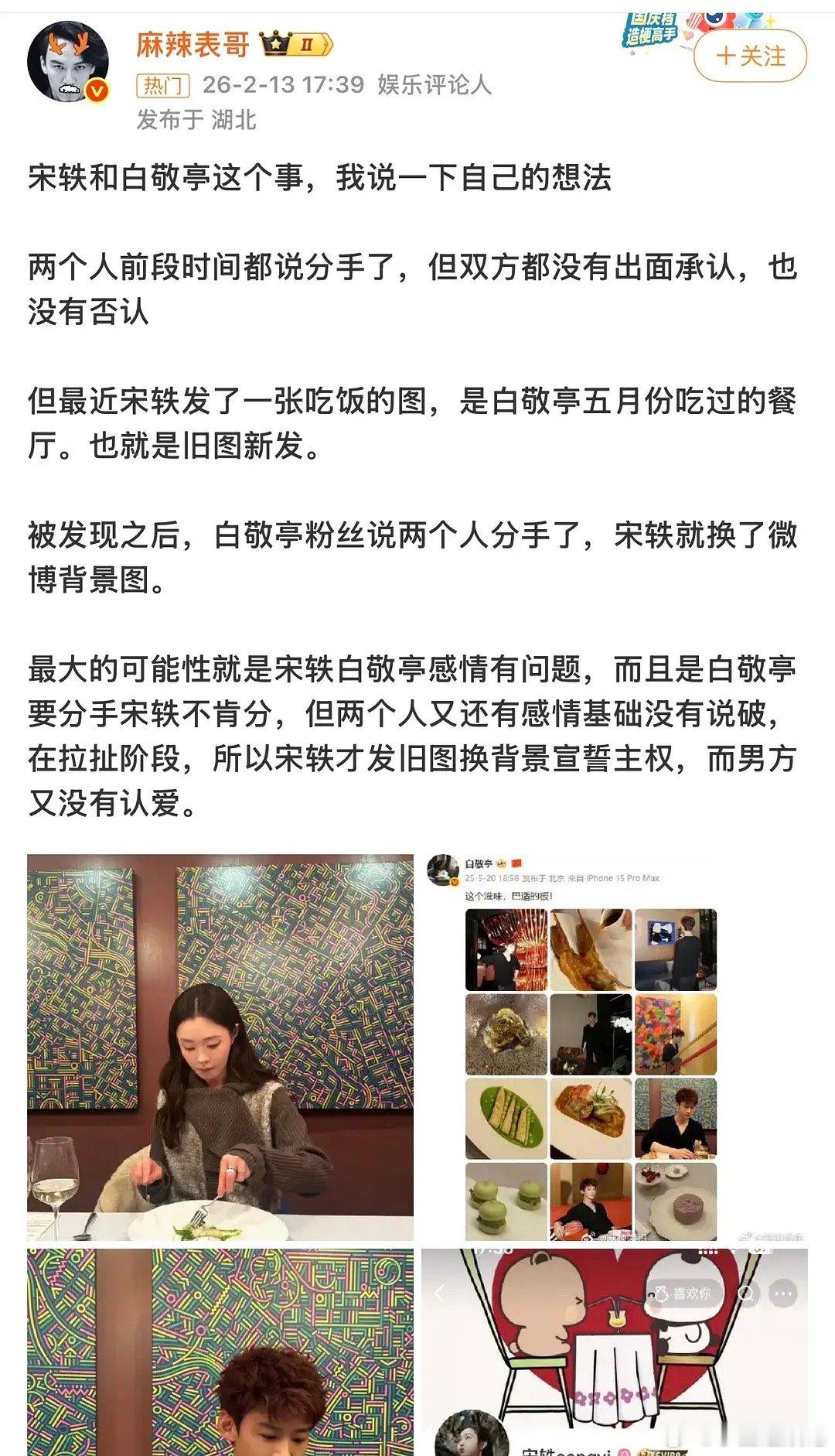 所以现在白敬亭和宋轶这是闹别扭了,没分手?还是复合了