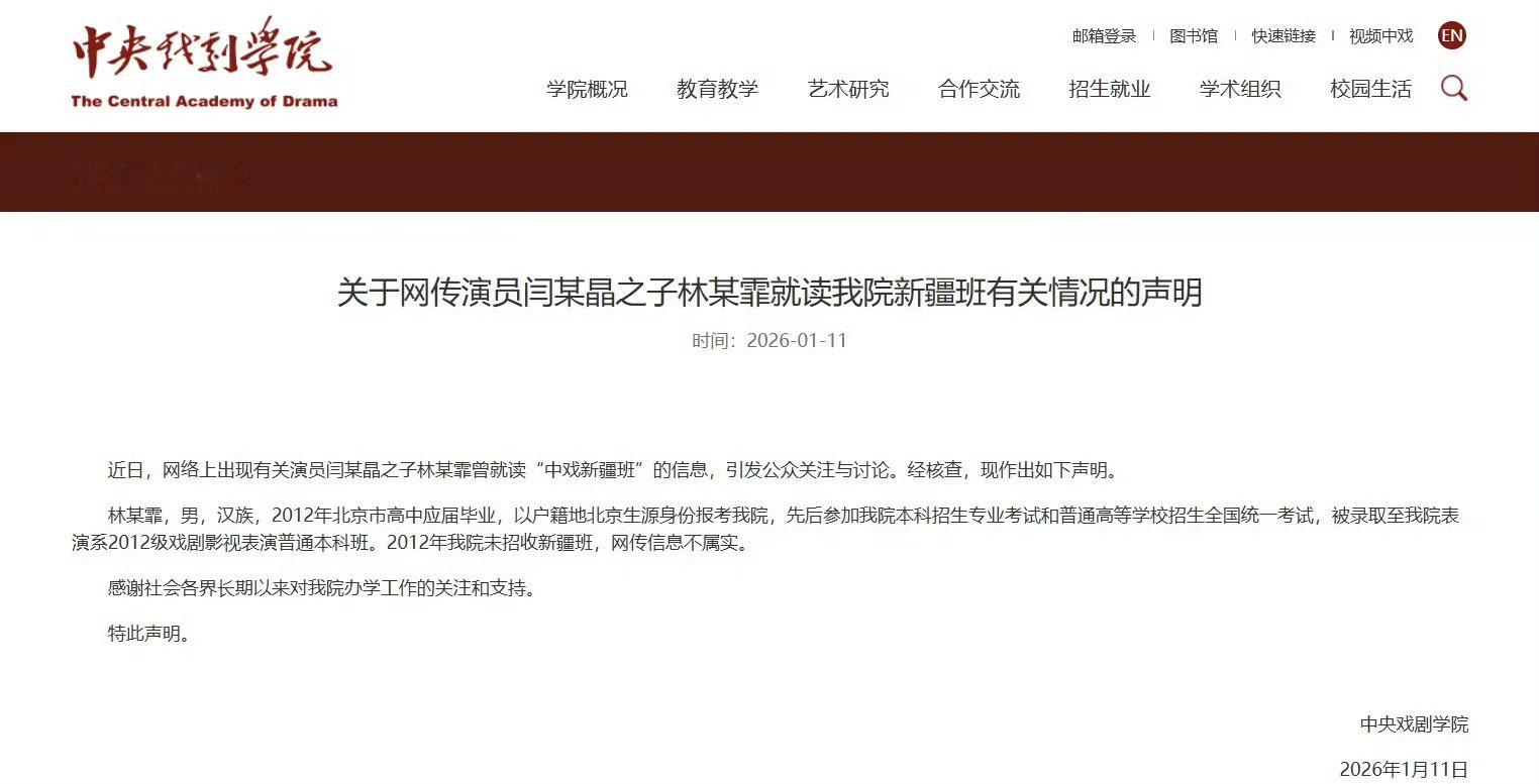 短短三个月内,中央戏剧学院三位核心领导相继主动投案,三人还均担任过表演系主任,这一罕见的“塌方式”腐败导火索,源于演员闫学晶直播“哭穷”“新疆班”等言论,闫学晶称儿子林傲霏因分数低,靠“中戏新疆班”低分入学。