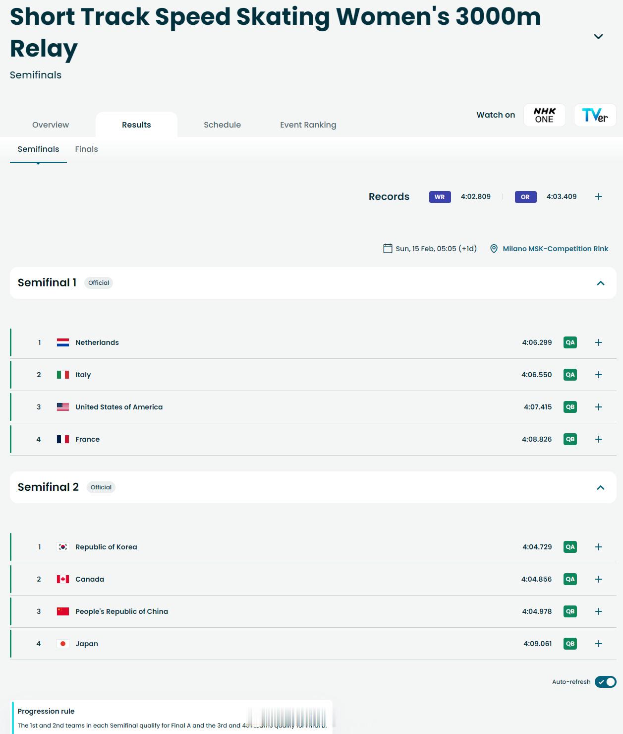 【冬奥女子短道3000米接力中国小组第三无缘争冠】短道速滑冬奥会 2月14日,冬奥会短道速滑女子3000米接力半决赛结束,中国队在第二组最后5圈抓住机会抢到首位,但在倒数第3圈被韩国超越,最后半圈被加拿大硬吃,遗憾排名小组第三,无缘A组决赛。韩国、加拿大、荷兰和意大利将争夺冠军。