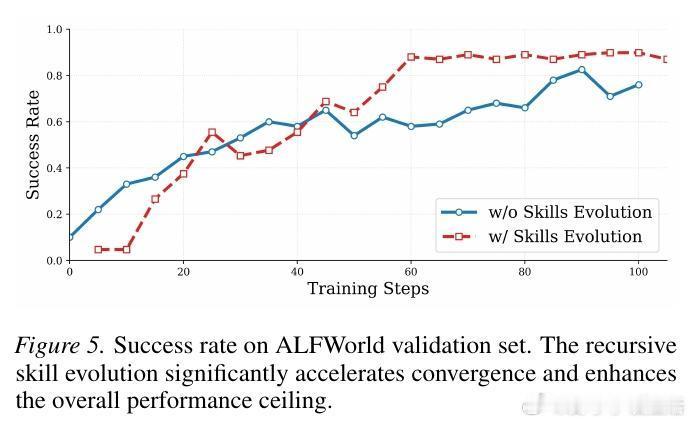 进化不应是静态的,而是一个动态的闭环。SkillRL引入了递归进化机制,让技能库与智能体策略在强化学习过程中共同成长。在每个验证周期后,系统会自动分析失败模式,生成新技能或修正现有技能。这种在战争中学习战争的模式,确保了技能库能随着任务复杂度的提升而不断自我迭代。