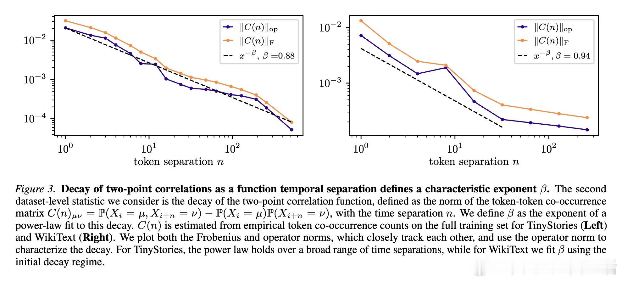 第二个是 $\beta$(Beta):它描述了两个词之间的关联性随距离增加消失得有多快。这代表了语言结构的长期依赖强度。