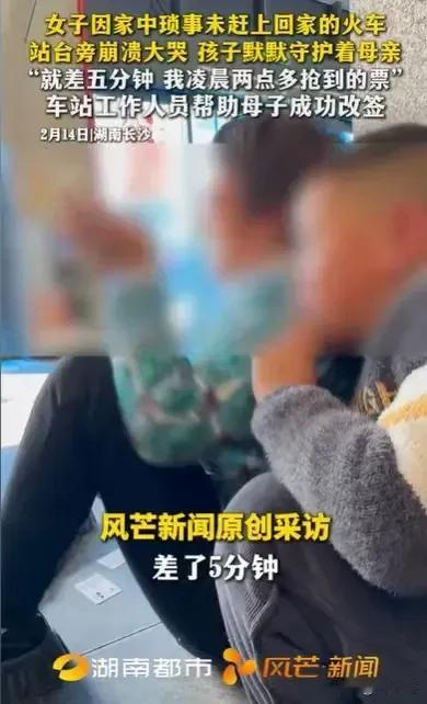 湖南长沙。 过年了,女子想回娘家,凌晨2点半抢到票。出发之前,丈夫让她洗碗扫地,等她赶到火车站,只晚了5分钟,女子崩溃大哭。工作人员帮助她改签了车票,女子顺利乘上高铁回了家。 过年就是一家团圆。女子想回娘家为什么不带着丈夫一起?一家三口齐齐整整出现,娘家不更高兴吗?如今你只带着孩子回去,是被家暴了还是离婚了? 丈夫让你洗碗扫地就是为了挽留你,他也不想一个人过年。两口子应该事先商量好,今年婆家,明年娘家,绝不是一走了之。互相理解,互相包容,方为婚姻之道。