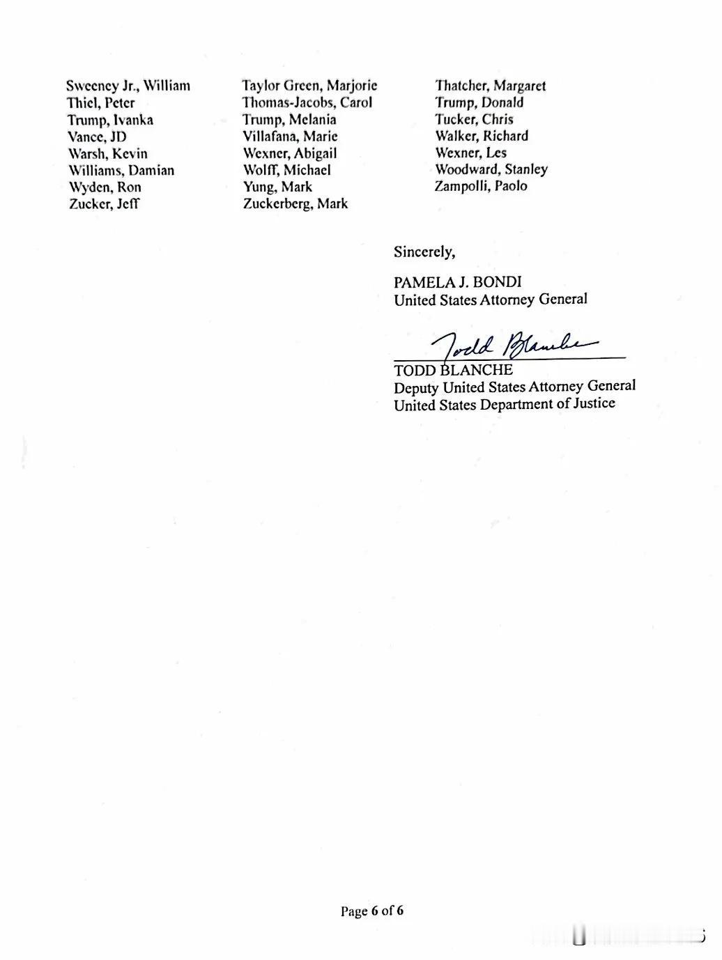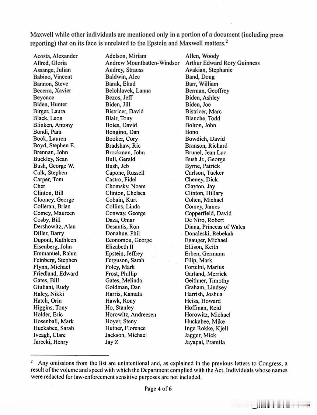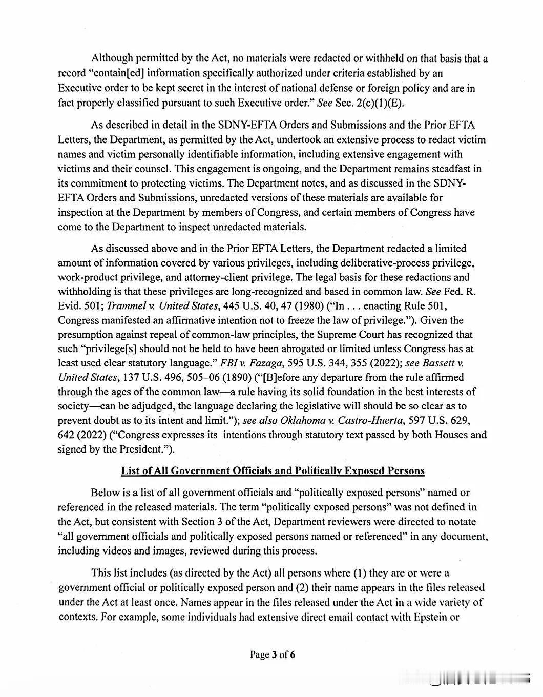 独家新闻:司法部已向国会发送了一封信,概述了对爱泼斯坦档案进行编辑的原因。 这份六页的信还包括一份档案中所有“政府官员和政治公众人物”的名单。