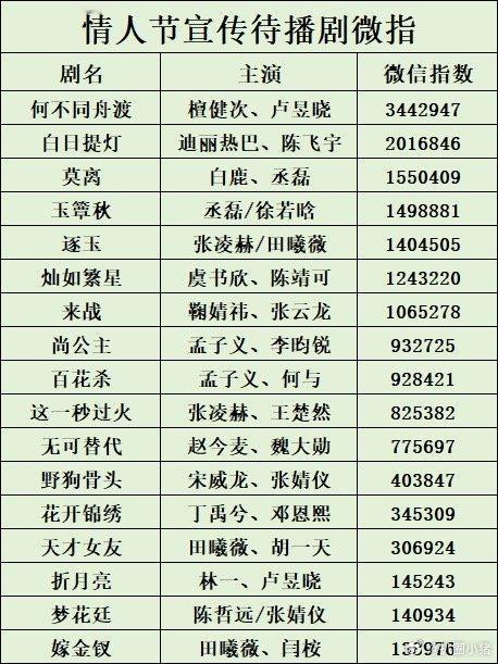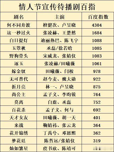 情人节待播剧,檀健次《何不同舟渡》微指第一,百指第一,抖点赞第一