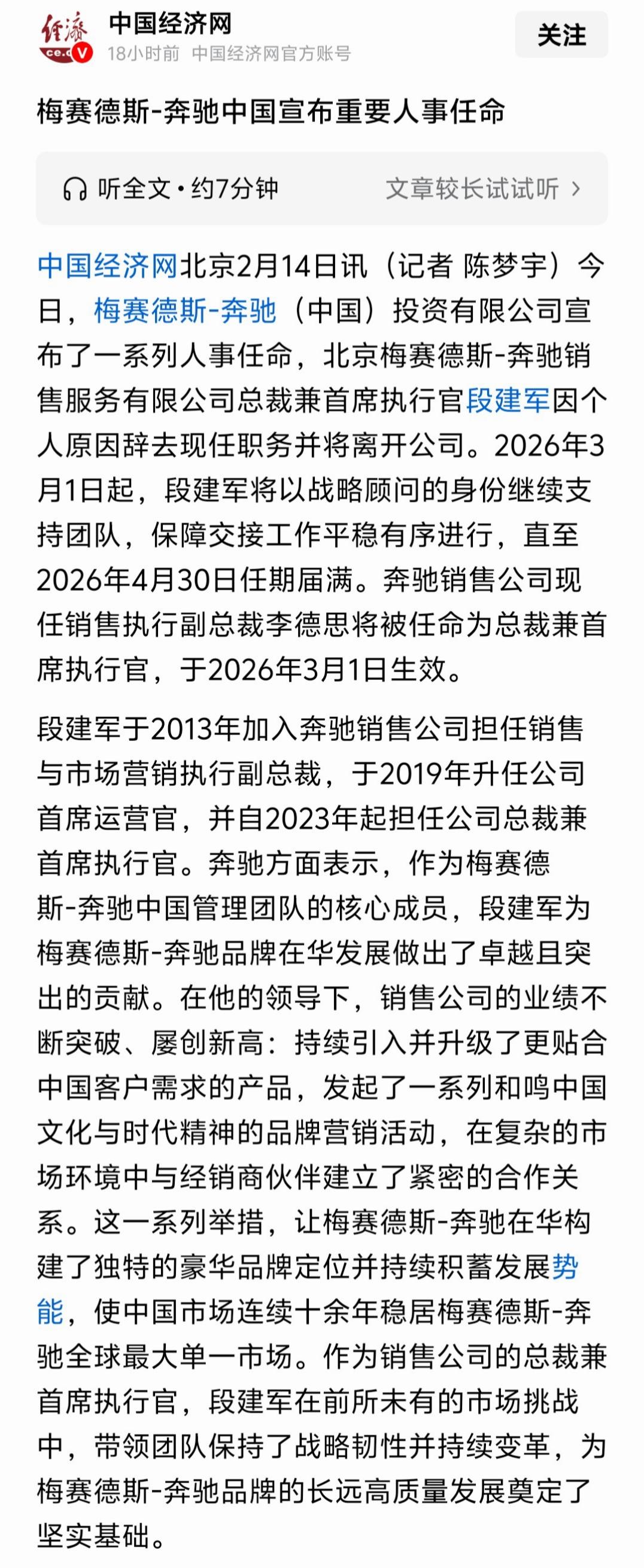 奔驰在华首位中国籍CEO段建军离职了,那句“尊何须借”还在耳边,如今他自己的位置
