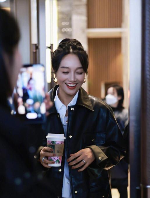 朱丹的这身“夹克皮衣加上白色衬衫加上白色背心”造型,不但把整个造型的层次感充分展现,而且极具视觉冲击力,实在让人想要低调都做不到。
