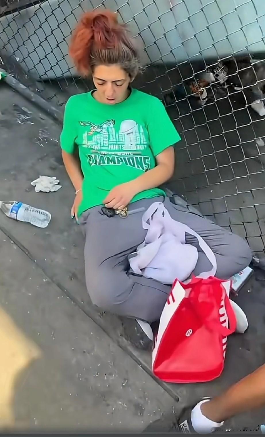 美国费城的街头,充满了颓废的氛围,一些精神颓废的人,有的里倒歪斜的躺在地上,有的佝偻着身体趴在地上,有的身体呈折叠状,这里面有男人,也有女人,有年轻的,也有岁数大的,感觉这些人都已经废了,即便是让他们结束流浪生活,也很难过上正常人的生活,这就是费城街头的芸芸众生,看着有几分荒诞,更有几分悲凉!