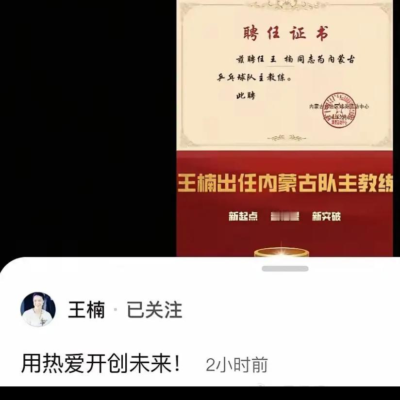 乒乓球大满贯得主王楠支援内蒙古乒乓球“洼地”——王楠“用热爱开创未来” 这么大的内蒙古竟然没有一个人 在国家乒乓球队, 王楠为了助力民族地区体育腾飞, 到内蒙古做乒乓球总教练, 相信楠总对乒乓球的热爱, 精湛的技术, 朴实的作风, 乒乓球又多了内蒙古一块沃土! 王楠对乒乓球事业始终割舍不下, 她到了内蒙古, 也能让乒乓球在草原蓬勃发展, 不久的将来, 王楠一定会带出来自草原的 乒乓球健将! 期待王楠带出内蒙古乒乓球冠军🏆, 这是王楠的向往, 也是她的追求, 这是王楠的事业, 也是她的性格, 支持王楠出征内蒙古乒乓球队!