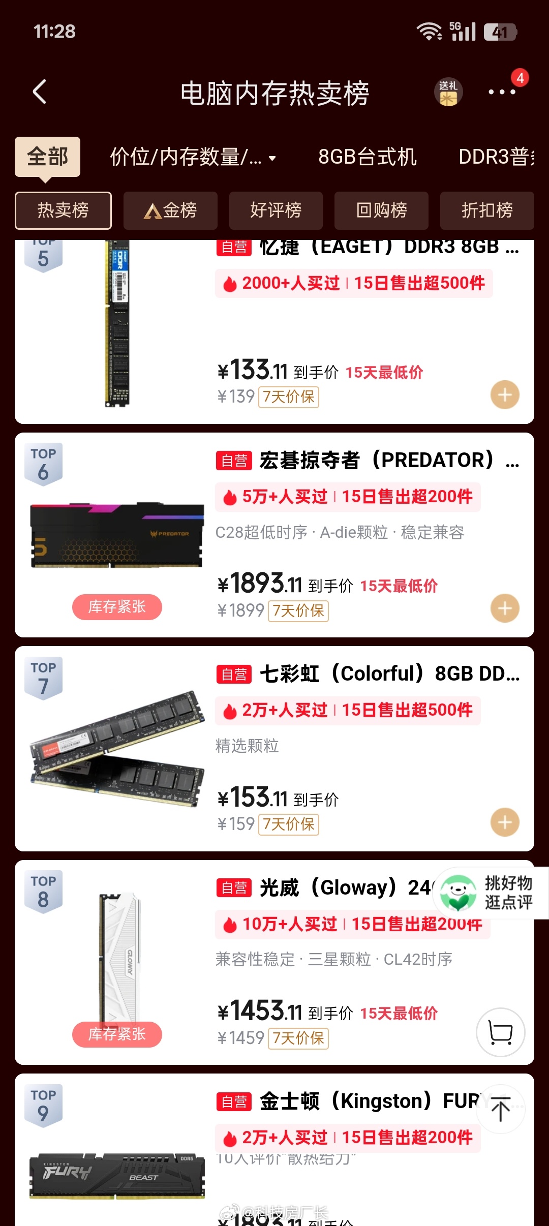 我还以为内存条卖不出去了,销量还可以啊,DDR3需求也不少,现在这价格能下手的全是富哥