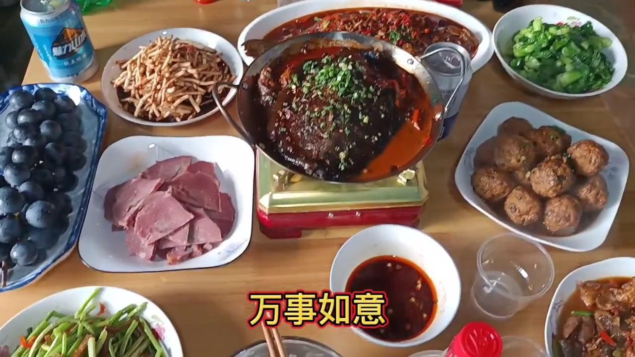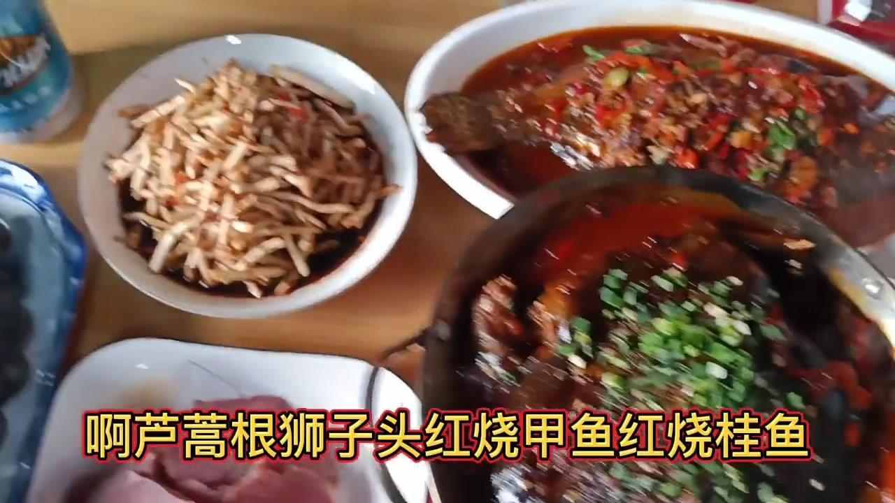 贵州好酒配好菜,一口入魂!🍲家里聚餐的快乐,就是有这么多硬菜!豆腐干、芦蒿根狮子头、红烧甲鱼、鳜鱼、鸡块、牛肉…满满一桌子,看着就香! 🥃再配上两瓶“革命小酒”,一口菜一口酒,这滋味简直了!举杯祝大家新年快乐,万事如意,这才是生活该有的烟火气呀~