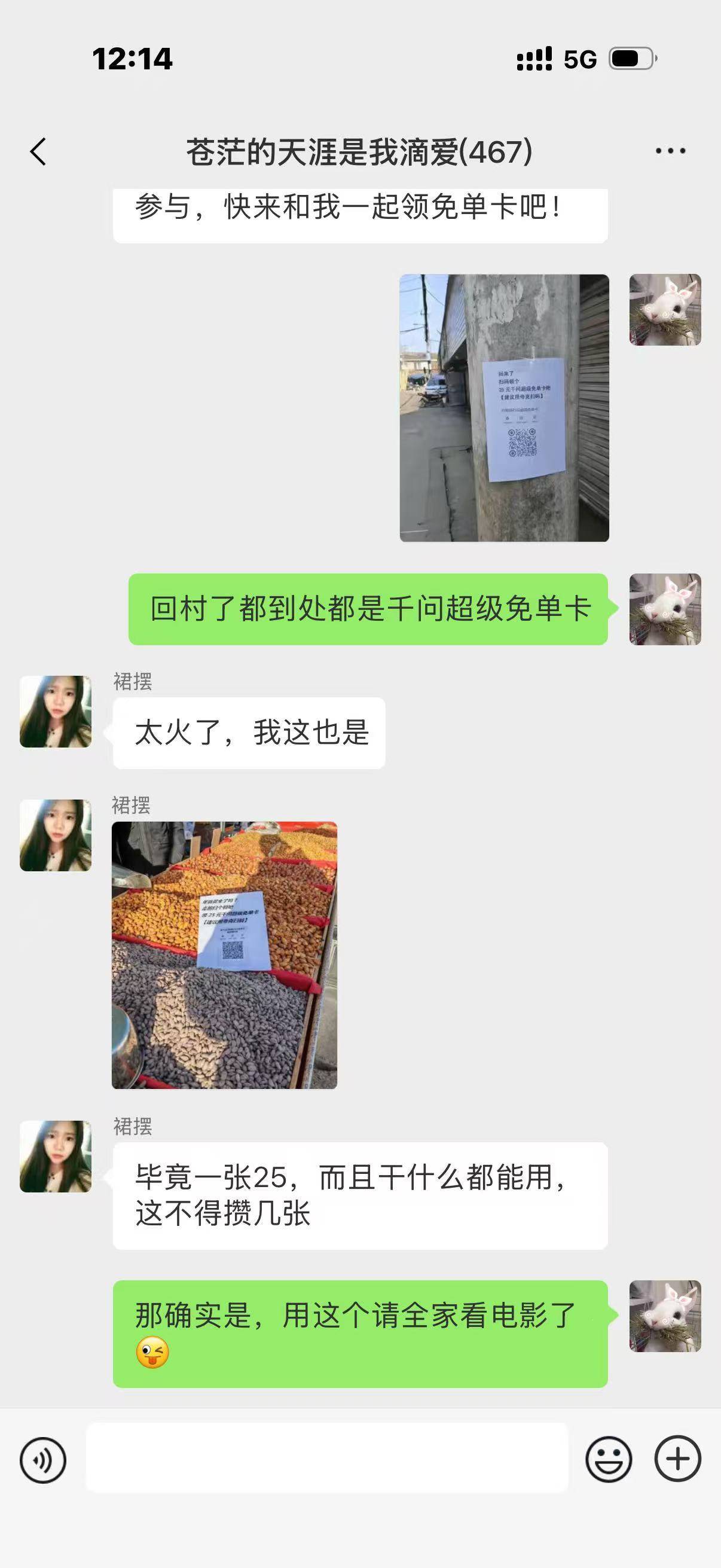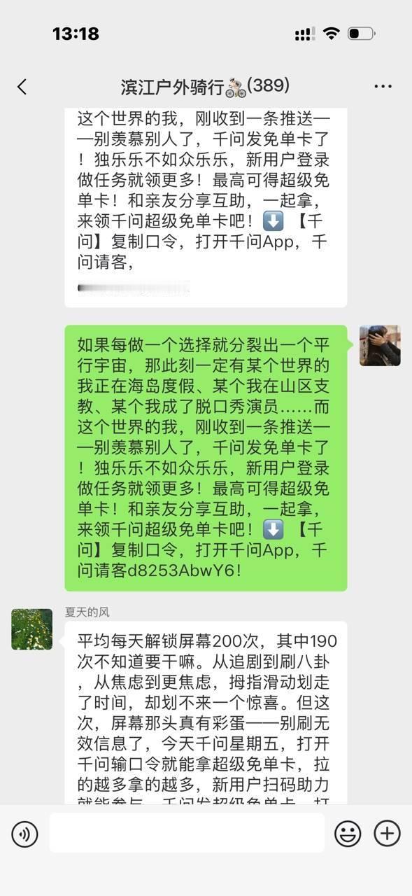 千问再次激活群聊 千问你果然最懂我!不整那虚的,点进群友链接就领上了超级免单卡,这波太夯了,怪不得列表八百年不聊天的群聊都被千问炸活了!