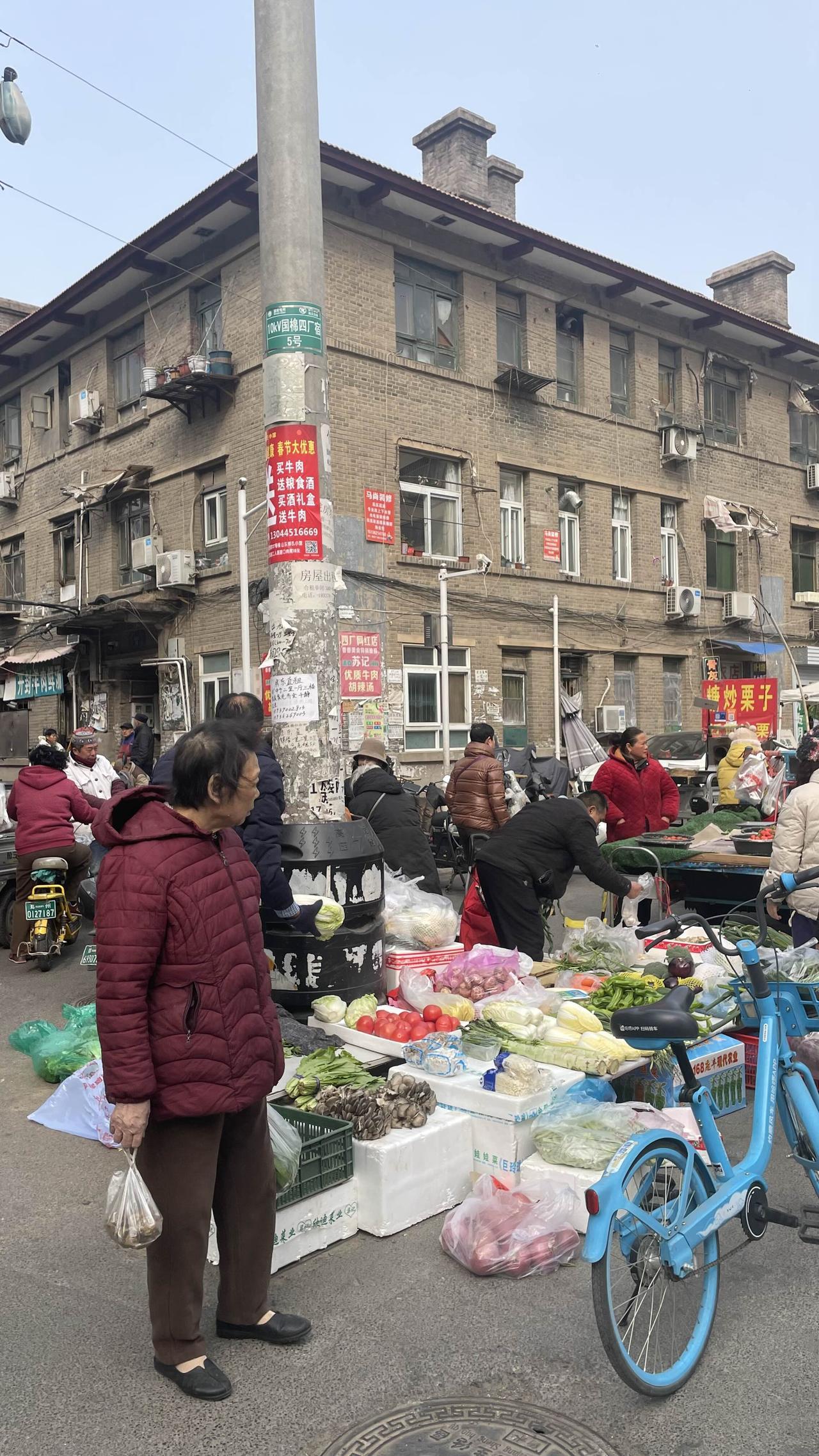 马上快过年了,郑州国棉四厂家属院农贸市场,很多西郊市民排队买年货,路上人头攒动,忙忙碌碌,也是挤不动人,实在是太火爆了。 城西益香酱牛肉门口排队,卖菜的小摊讨价还价鱼铺小伙正在挑鱼宰鱼,苏记胡辣汤门口的圆桌很多买菜的市民喝汤,烟火气息十足。 这条街名字叫向阳街,是西郊生活的缩影,平时这附近的社区农贸市场,早晨就有很多人来买菜人声鼎沸喧嚣热闹,春节逛街的市民会更多。 今年春节你来这买年货了吗? 国棉厂小区 棉纺厂家属楼 四厂菜市场