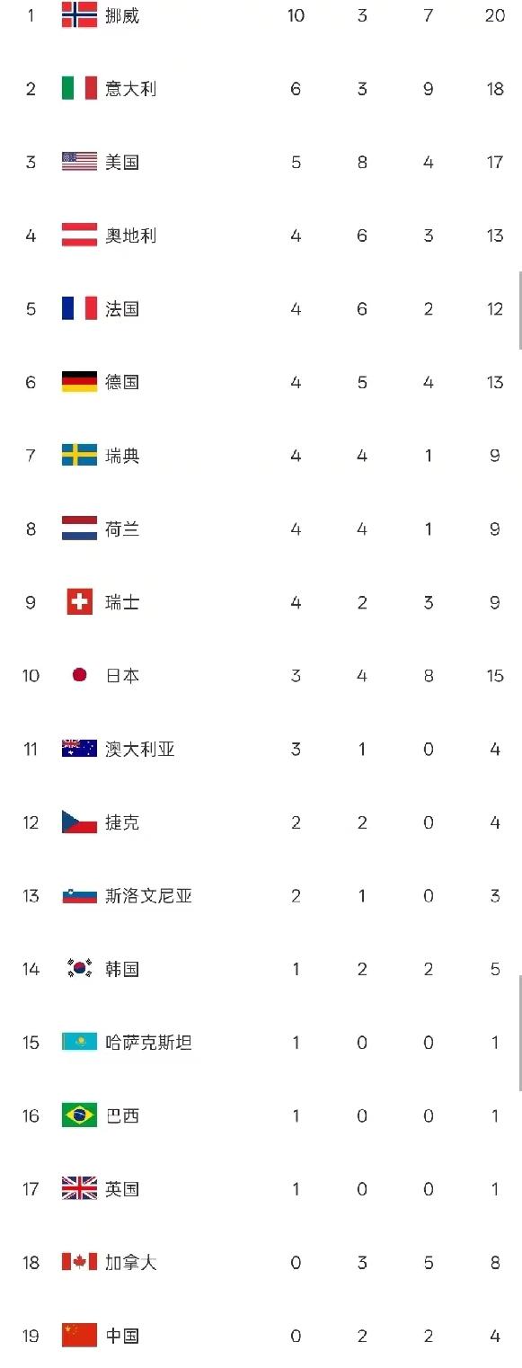 北京冬奥会9枚金牌,米兰冬奥会到目前为止0枚金牌,中国队怎么了……? 北京冬奥会中国队拥有主场之利,再加上谷爱凌,苏翊鸣,隋文冲/韩静等高水平发挥,中国队在短道速滑,花样滑冰,女子空中技巧等方面有优势,单届冬奥会拿9枚金牌,也是中国队历届冬奥会拿金牌最多的一届,中国队从参加冬奥会开始到今天,总共拿到了22枚冬奥会金牌🥇,实属不易……! 米兰冬奥会,中国队整体发挥不佳,估计有点水土不服,谷爱凌,苏翊鸣,高亭宇,刘少昂等实力悍将纷纷遭遇滑铁卢,中国队在短道速滑等优势项目中都没能站上最高领奖台!目前中国队排名第19位,仅仅获得2银2铜4枚奖牌,同为亚洲的日本队已经拿到了3金4银8铜总共15枚奖牌,排名第10,韩国1金2银2铜总共5枚奖牌排名第14,哈萨克斯坦也有1金入账,排名第15,也就是说,中国队目前在亚洲国家也是排名第4,日本队太强了,他们的总奖牌数量可以排到第4,次于美国的17枚奖牌,中国队还需要努力啊……! 北京冬奥会中国队确实是利用主场之利收获满满,而一旦到了别人的地盘,我们面临的压力和各种意外情况就会无限多,中国队想要争取好成绩,只有不断的强大自己,因为只有绝对的强者才不会被任何外界因素所干扰……!米兰冬奥会