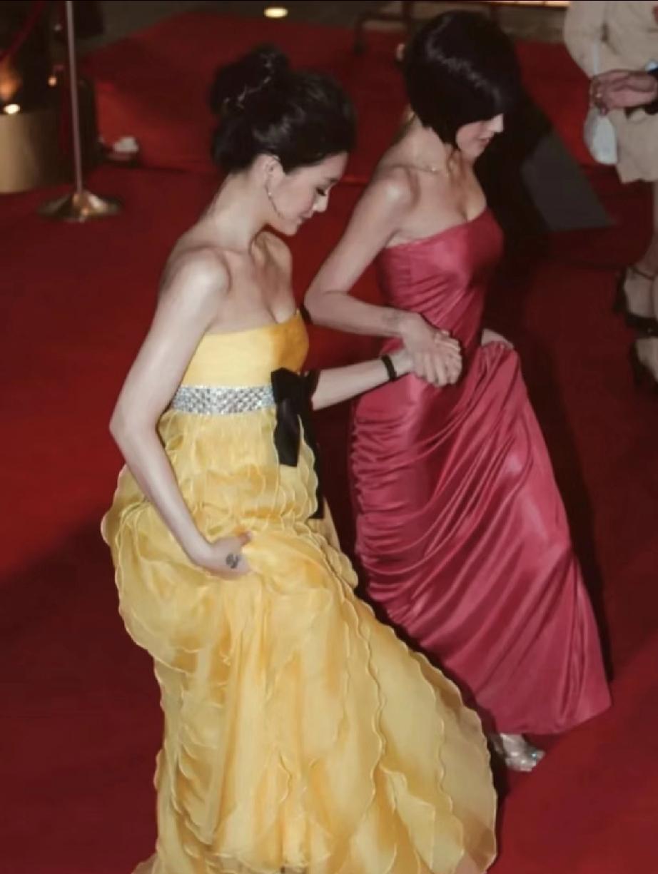 大小S姐妹俩的“番茄炒蛋”组合,真是明艳又鲜亮。 即便是大露肩礼服造型,也挡不住俏皮可爱的甜美风。