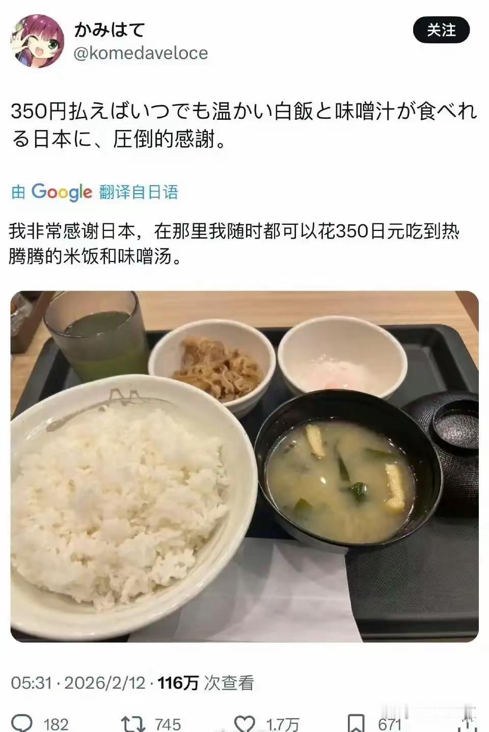 在日本,吃一份350日元的米饭套餐,会拍照打卡,写小作文炫耀,实在是太可怜了。热