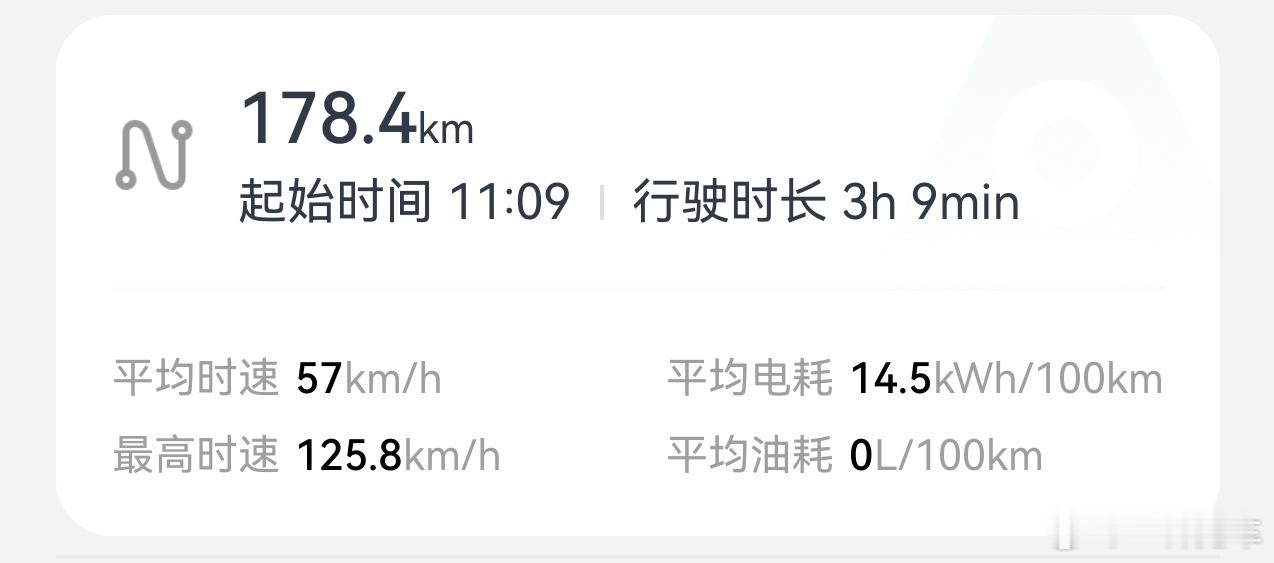 图2高速为主,而且有一段新修的高速没什么车,基本都130km/h巡航。电车超过110km/h后,能耗随着时速的提升是很直观的。S9T的造型风阻已经比SUV低很多,顺畅高速这个能耗,我认为也完全让人满意了。
