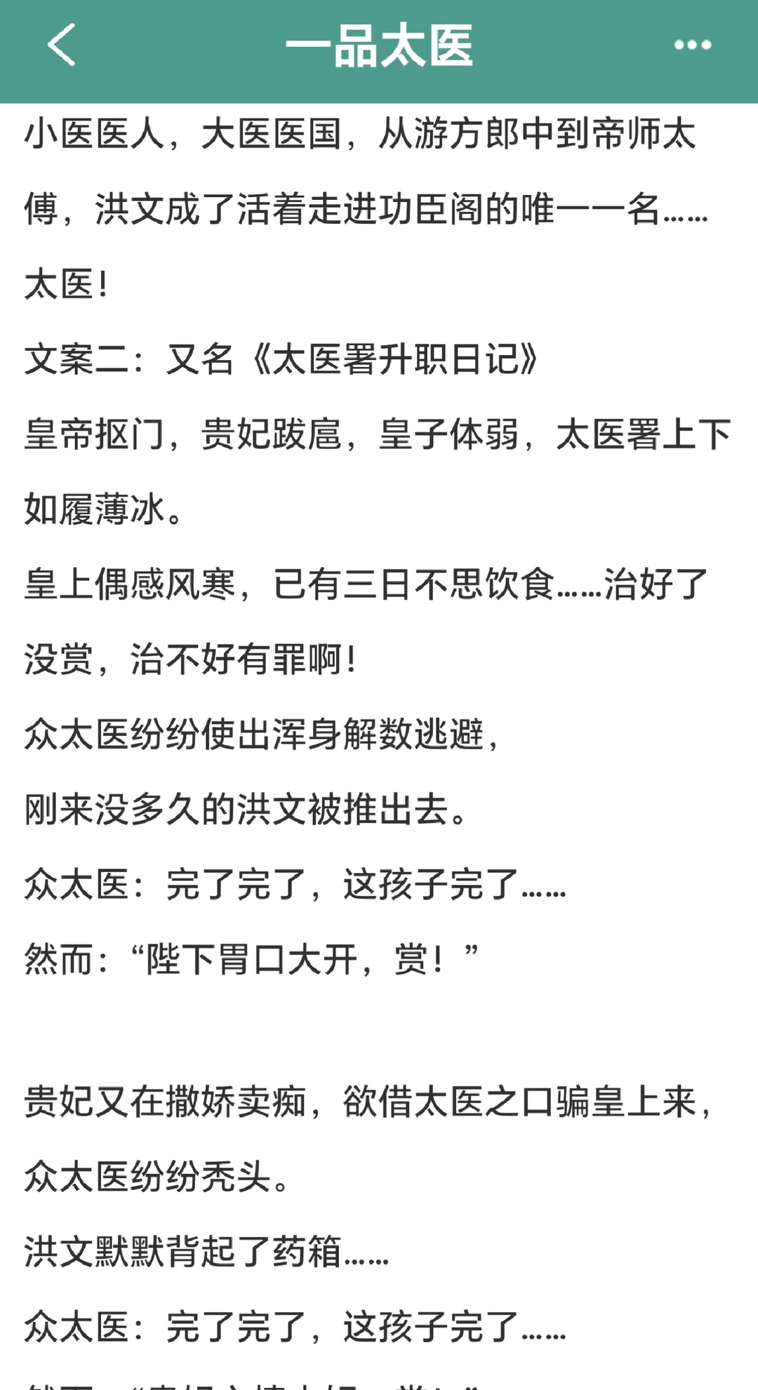 今天挖到的宝藏完结古言小说:一品太医