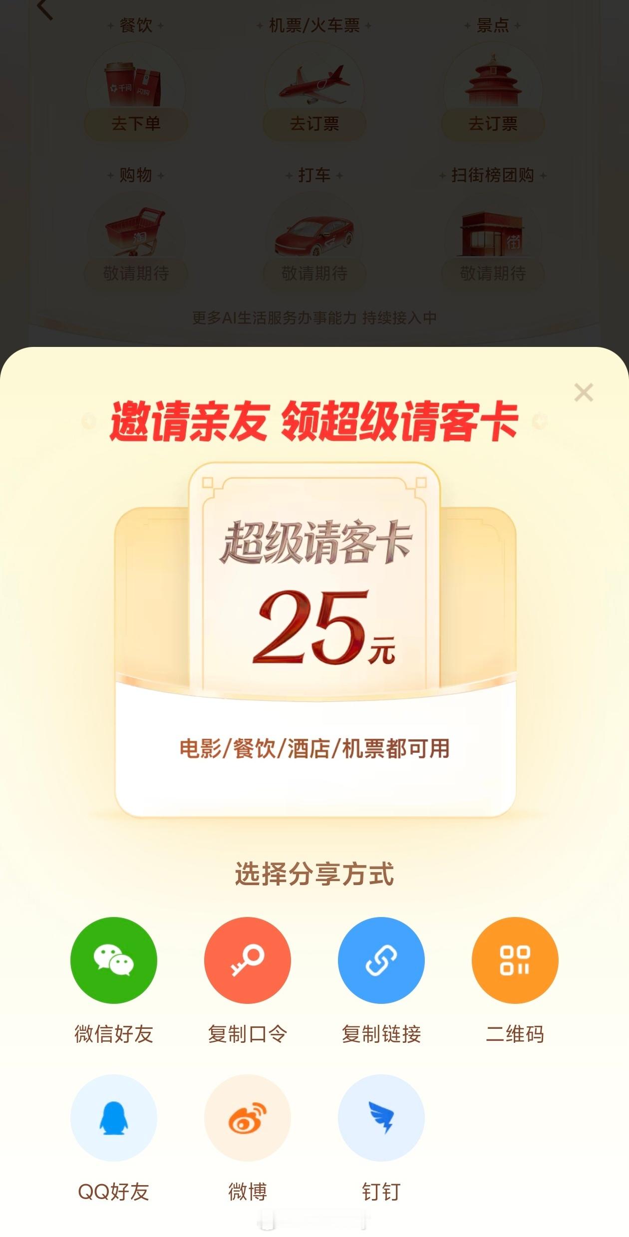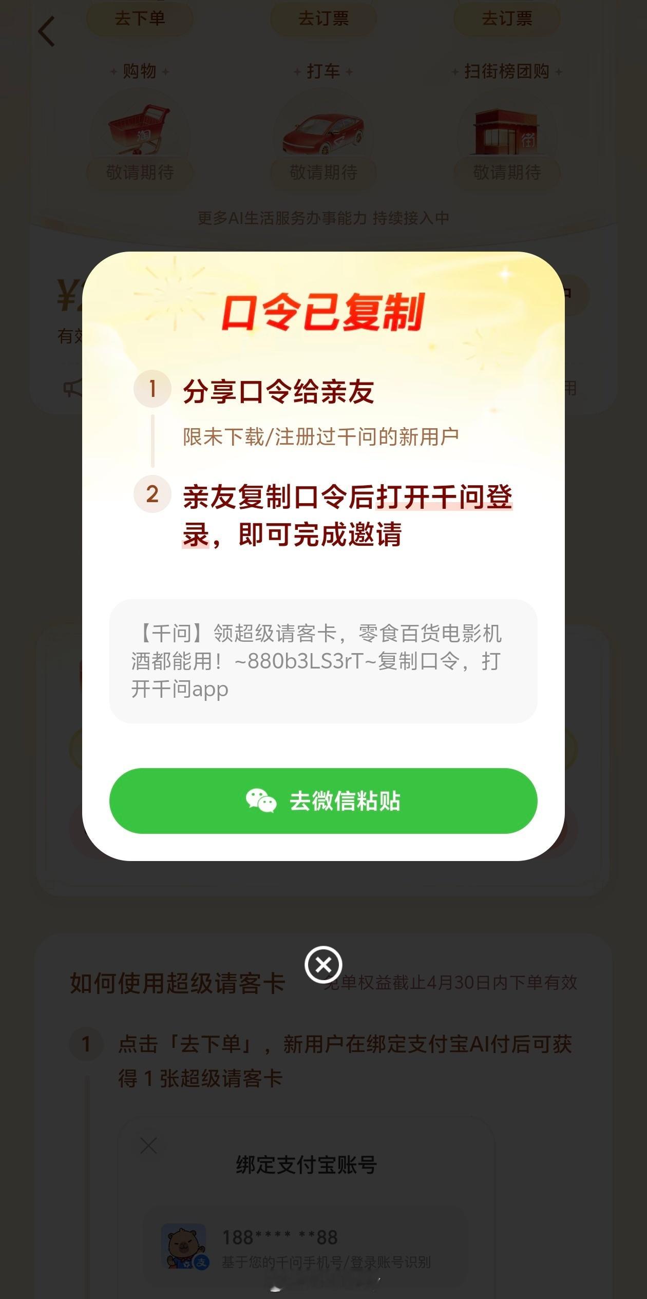神秘口令一分享,25元的超级免单卡直接到手,直接承包了过年期间的奶茶,电影票。