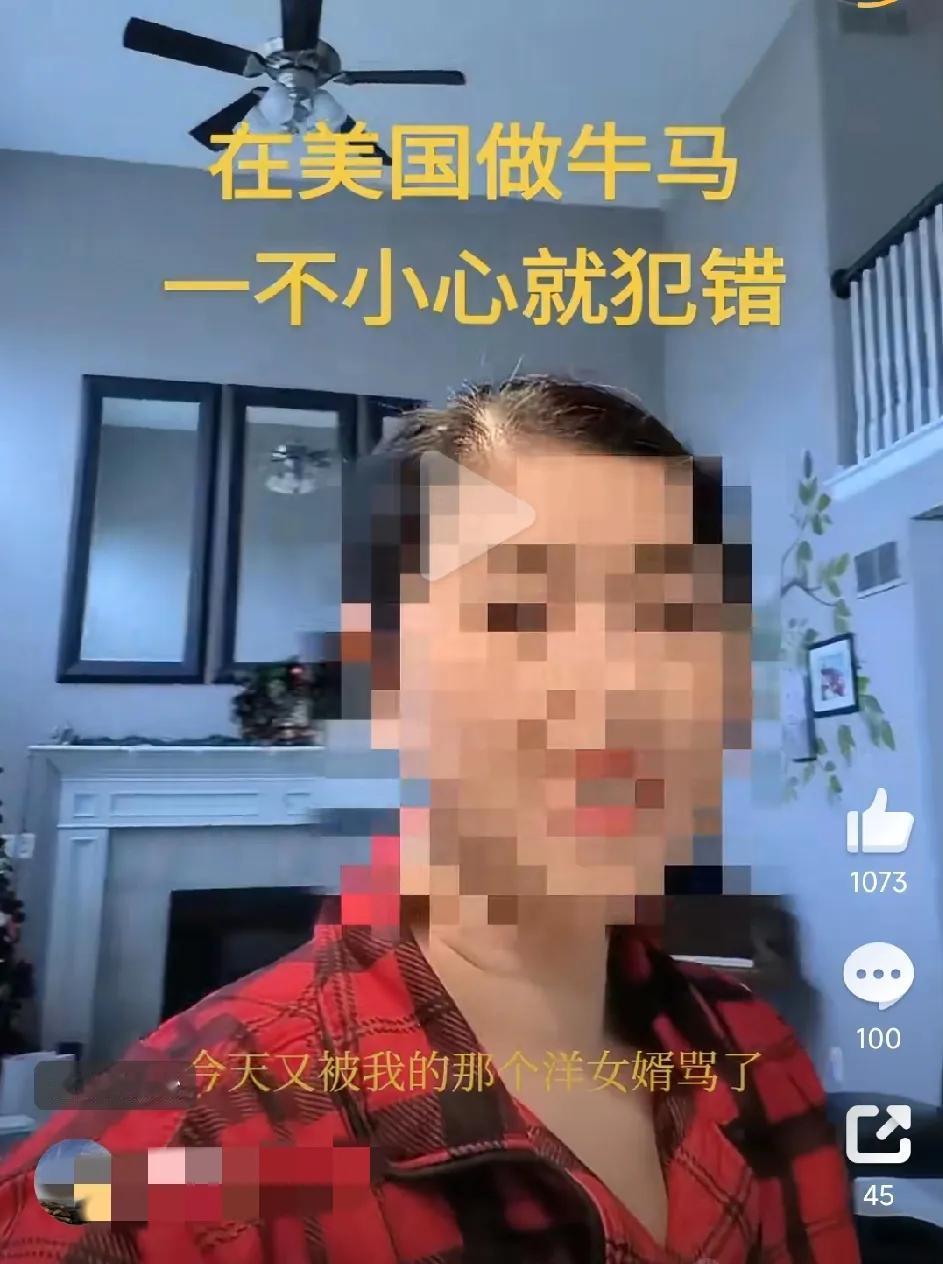 一个在居住在美国女婿家的中国妇女发视频吐槽在洋女婿家的日常生活:今天又被我的那个