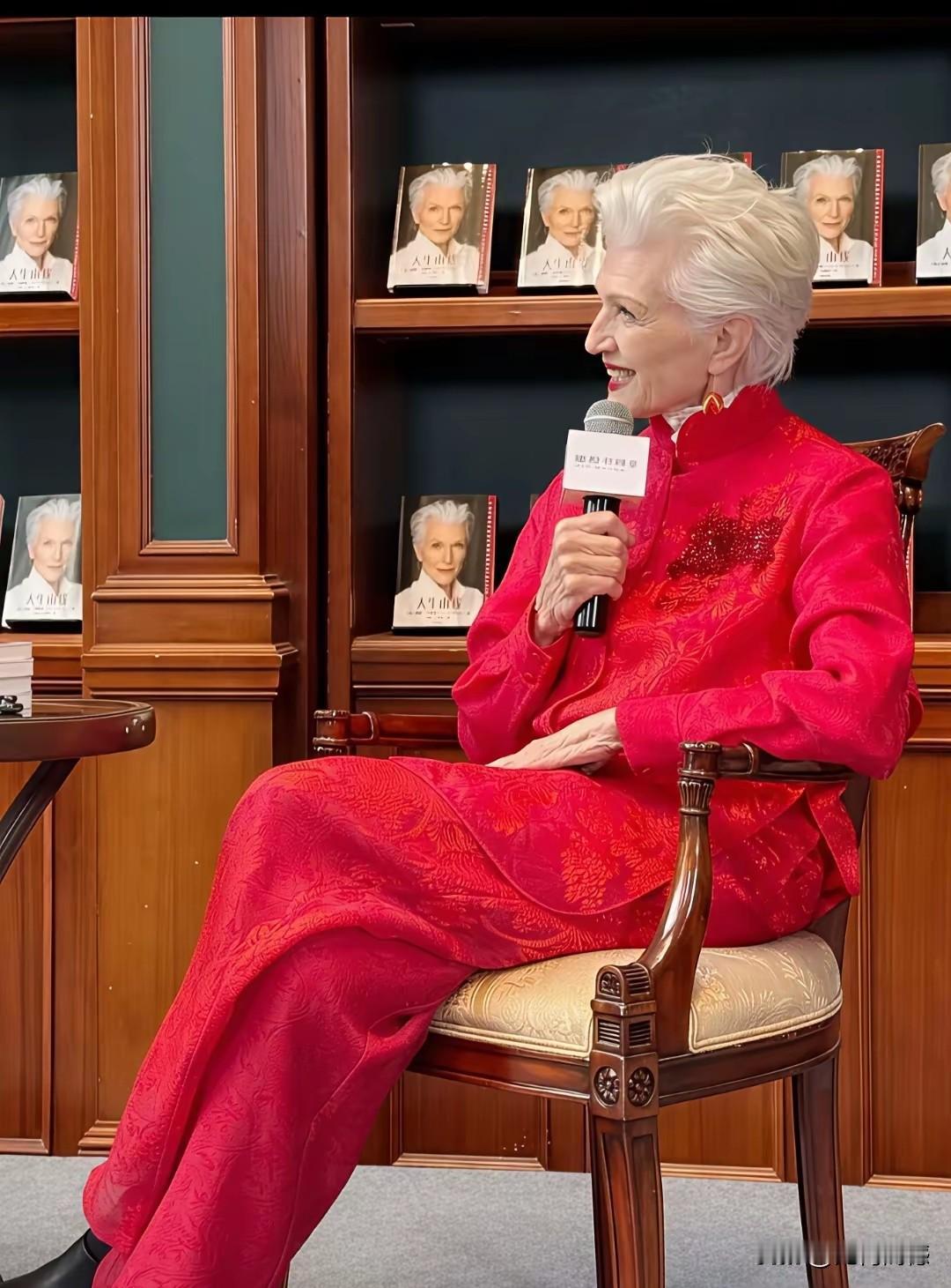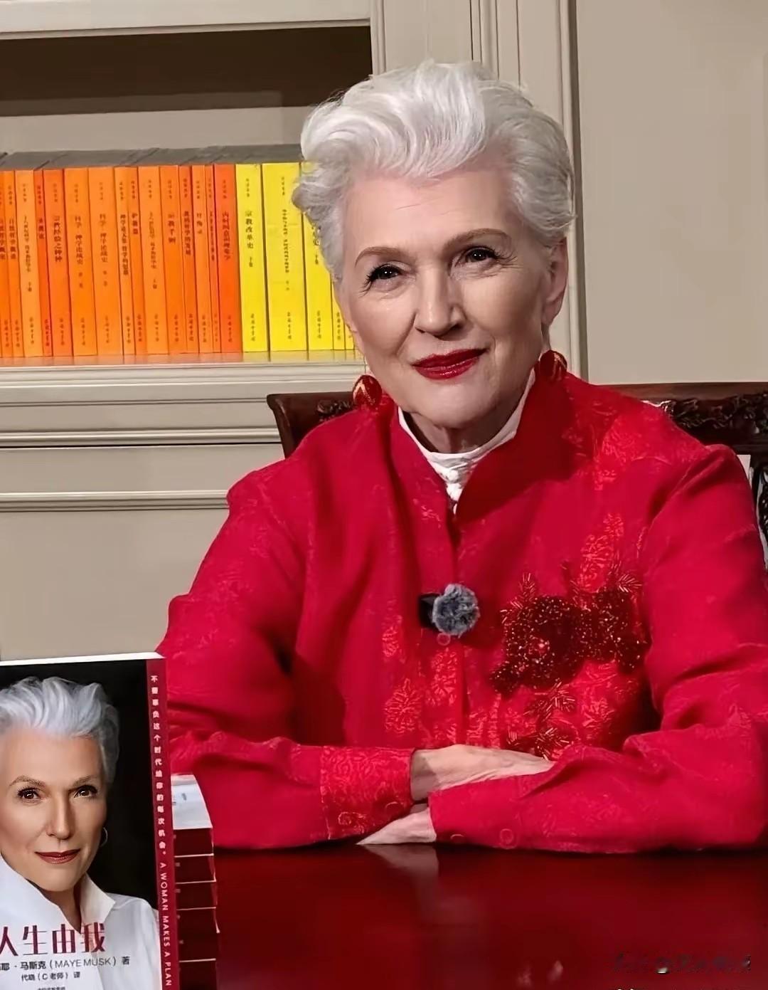 马斯克的母亲,美丽了一辈子,幸福了一辈子,看这老太太穿着打扮,非常的喜庆,充满了中国的元素,她拿的这幅画作,不知道是不是她画的,但是上面“人生有我”这四个字,我敢下断言,这肯定不是她写的,因为这几个字有着深厚的书法底蕴,没练过书法的人,恐怕是写不出这么好的字来!