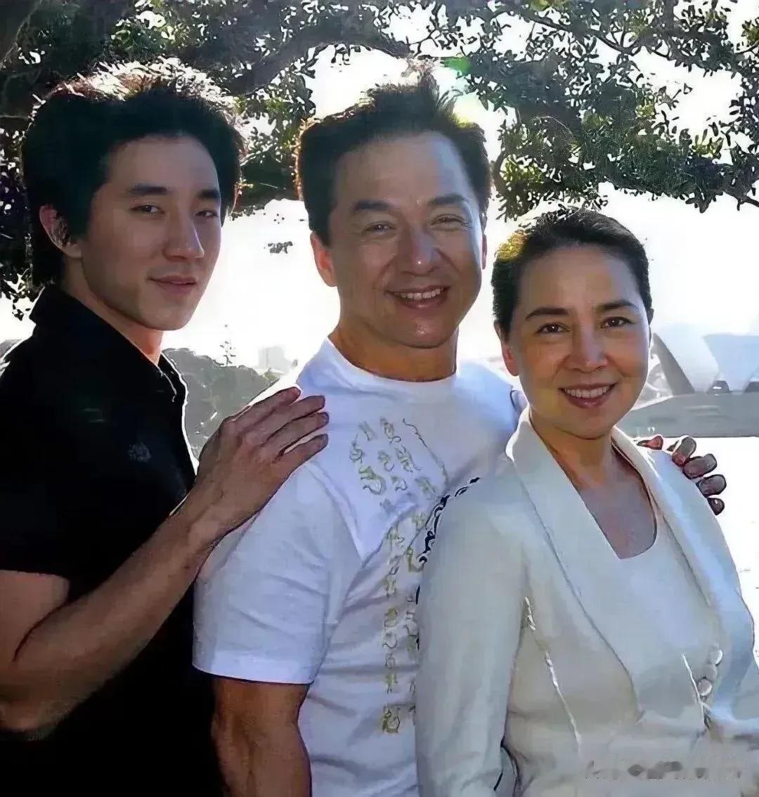 林凤娇老了就变成了成龙,瞧这一家人,是不是共用一张脸了?成龙基因强大,所以儿子像他