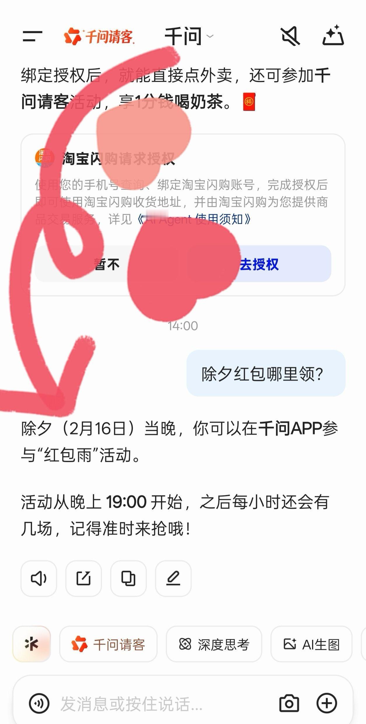 千问红包雨除夕晚上7点千问直接撒钱这波AI大战太实在了。一共四波红包雨,发口令就能领大家定好闹钟别错过了
