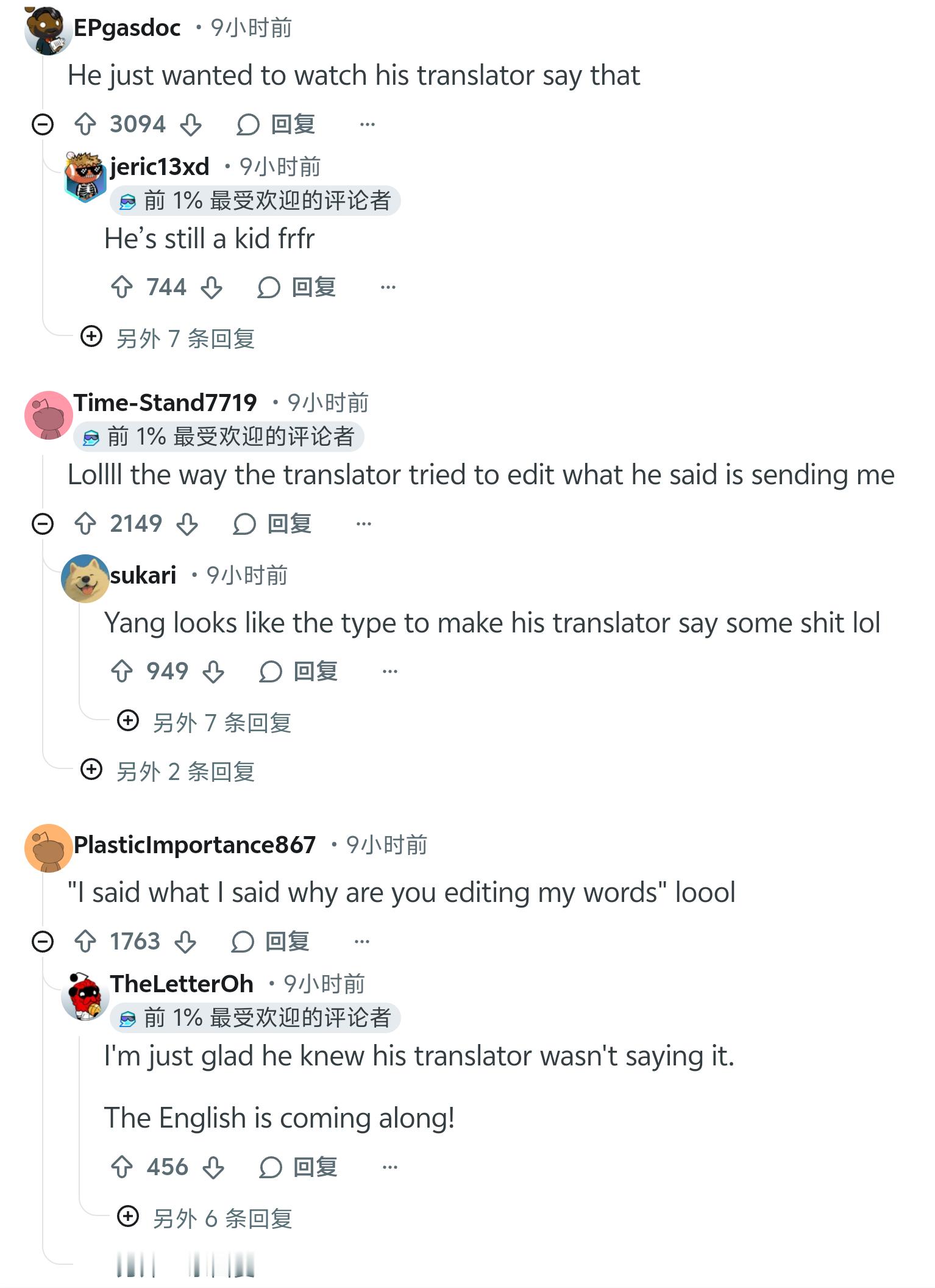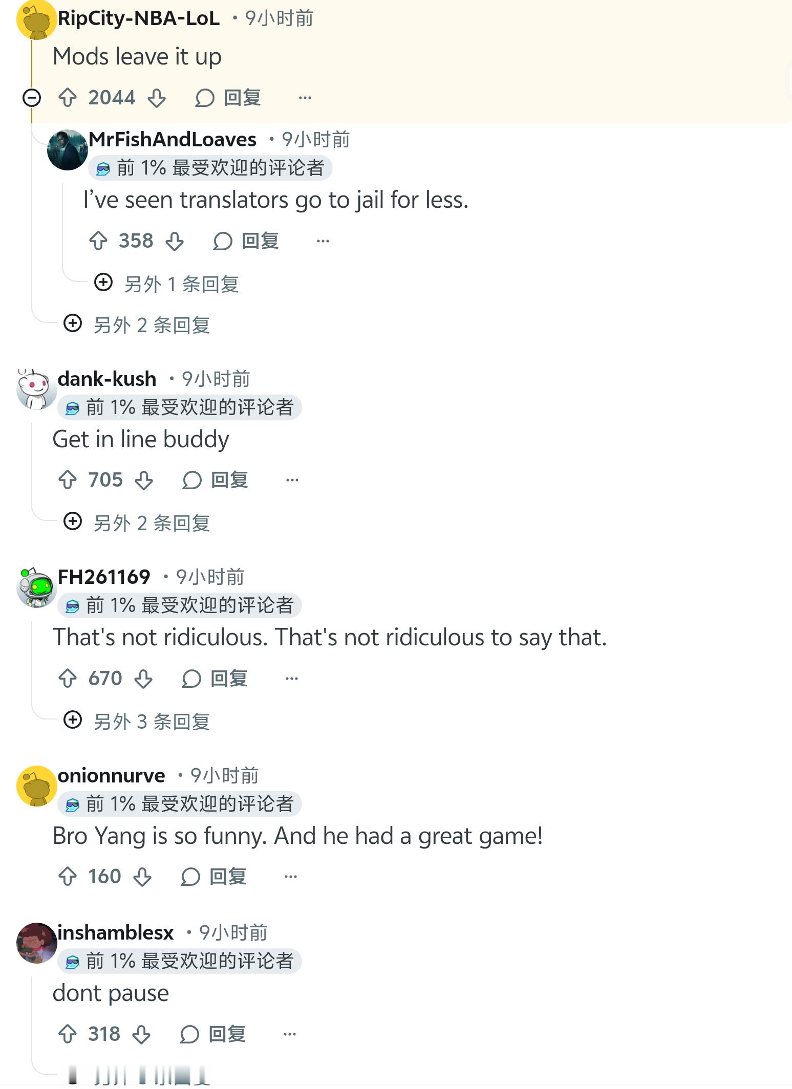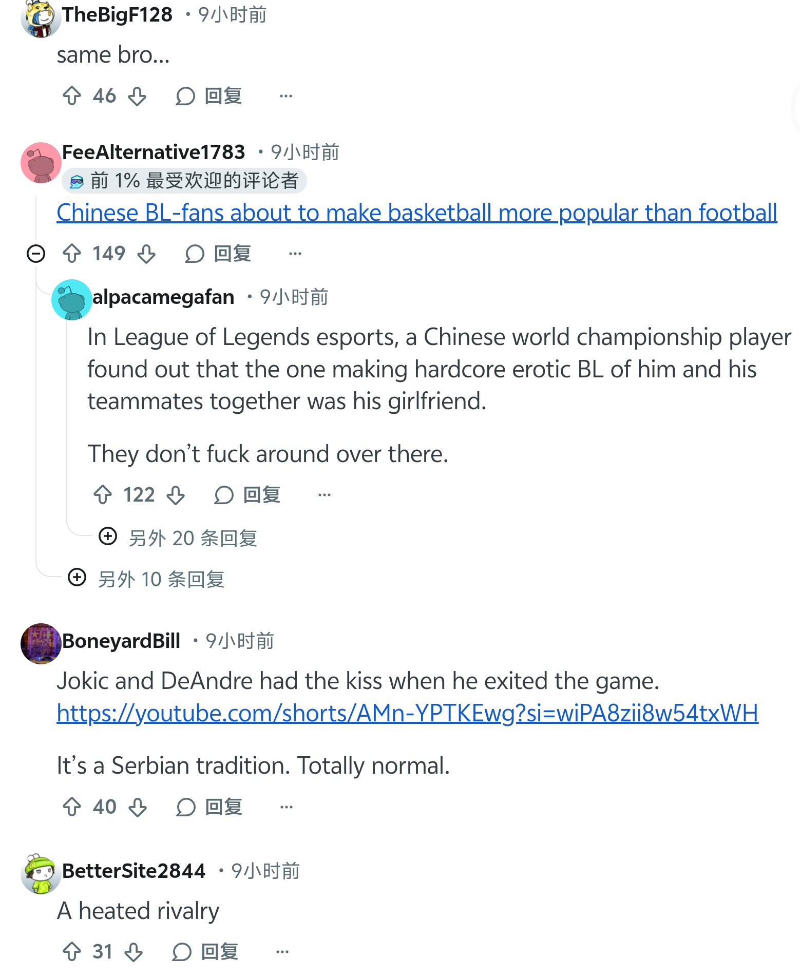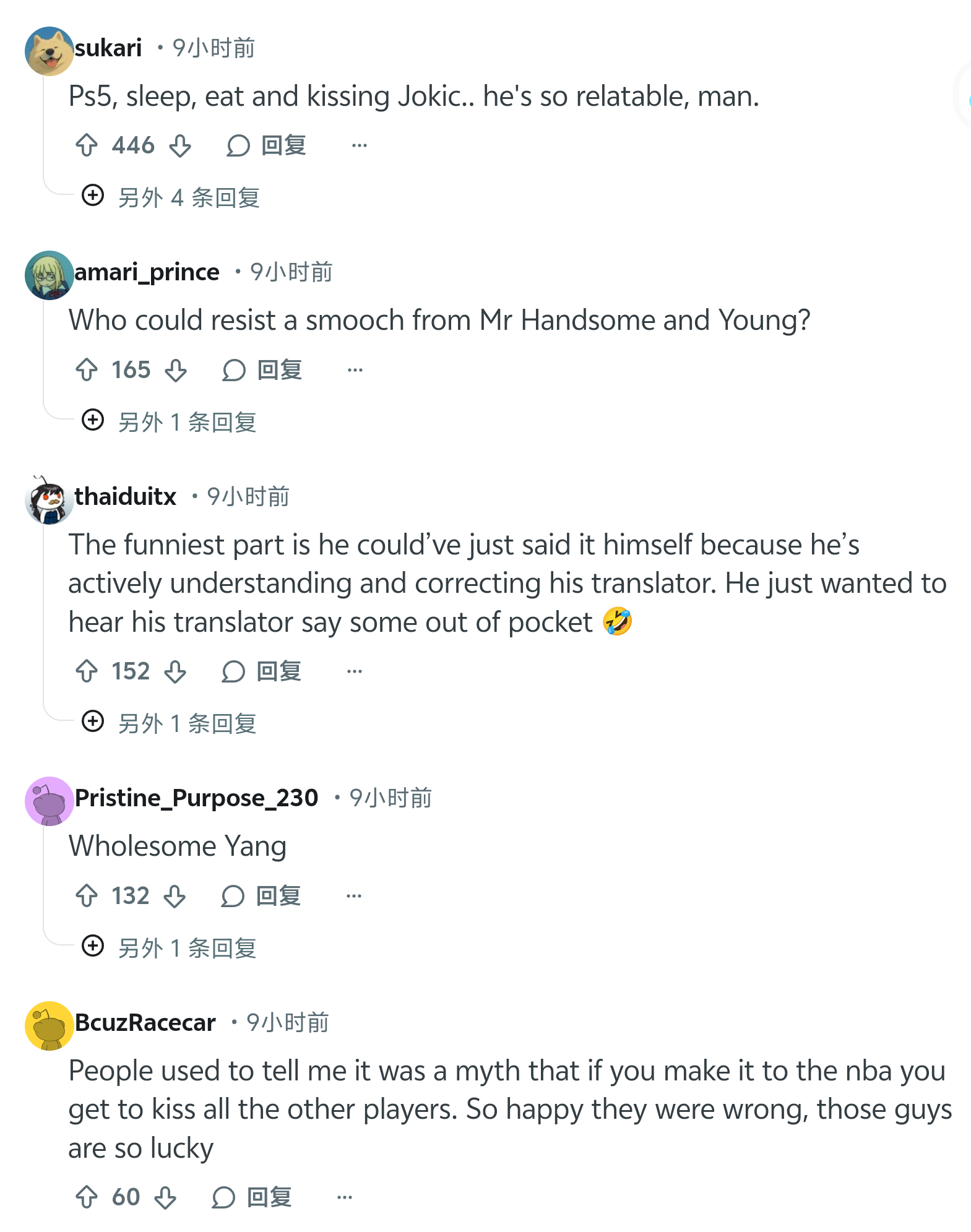 Reddit对杨瀚森赛后采访提到想要亲约基奇的讨论