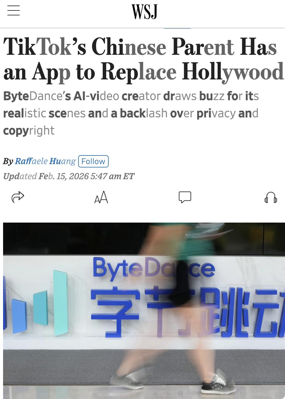 外媒:Tiktok中国母公司字节跳动开发了一种新的人工智能视频创作模型,能够将单一文字提示转化为包含情节、场景变化和独特角色的高质量视频。 字节跳动的这一技术使其在制作人工智能电影和其他视频娱乐工具方面成为 OpenAI 和谷歌的竞争对手。其 CapCut 应用的全球用户将很快可以使用该公司的最新 AI 视频创作模型 Seedance 2.0,该模型已在中国版 Jianying 上推出,能够生成连贯的情节、逼真的旁白和背景音效以及复杂的角色动作。