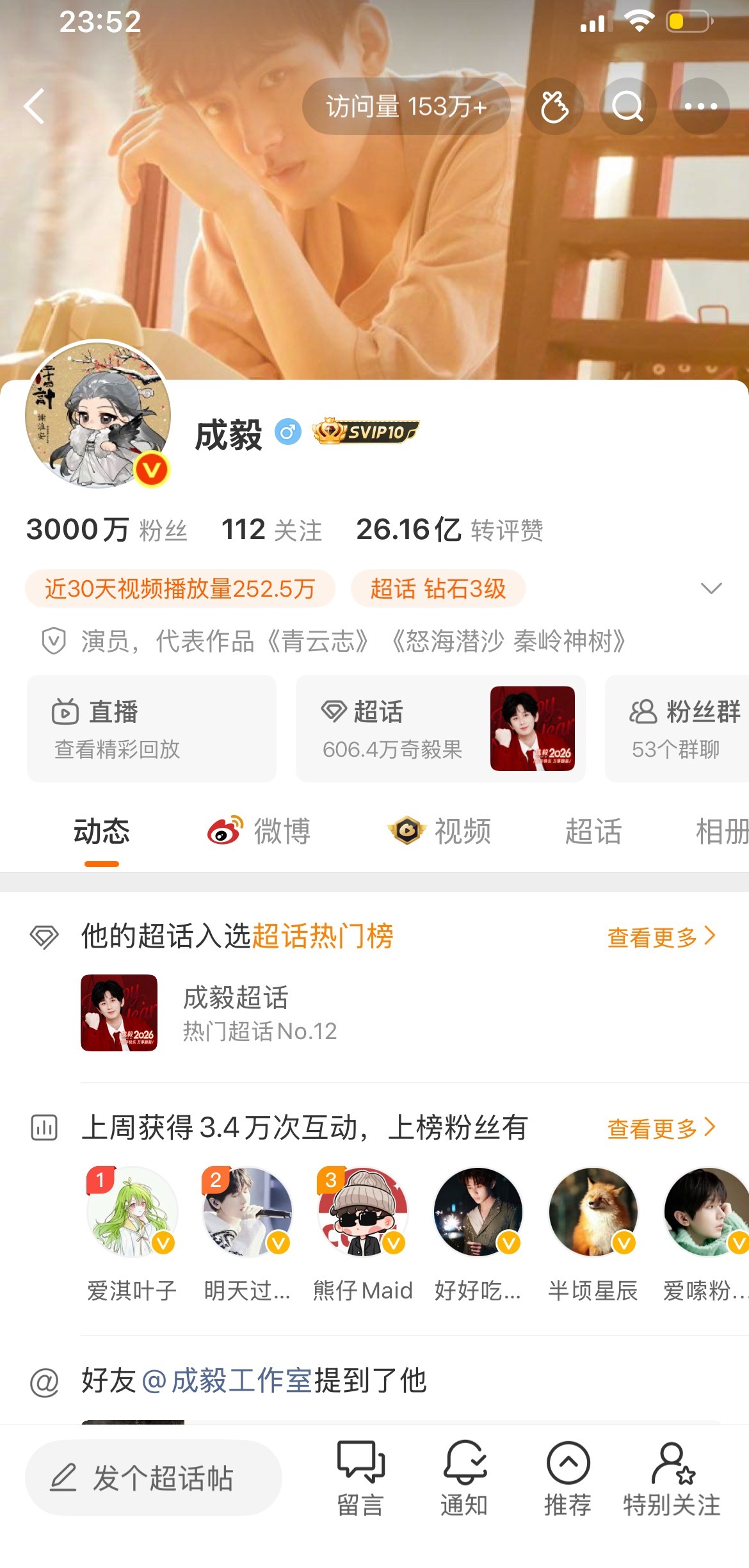 🎉🎉成毅微博3000万粉丝!!2026年2月15日!!农历新年前一天!!
