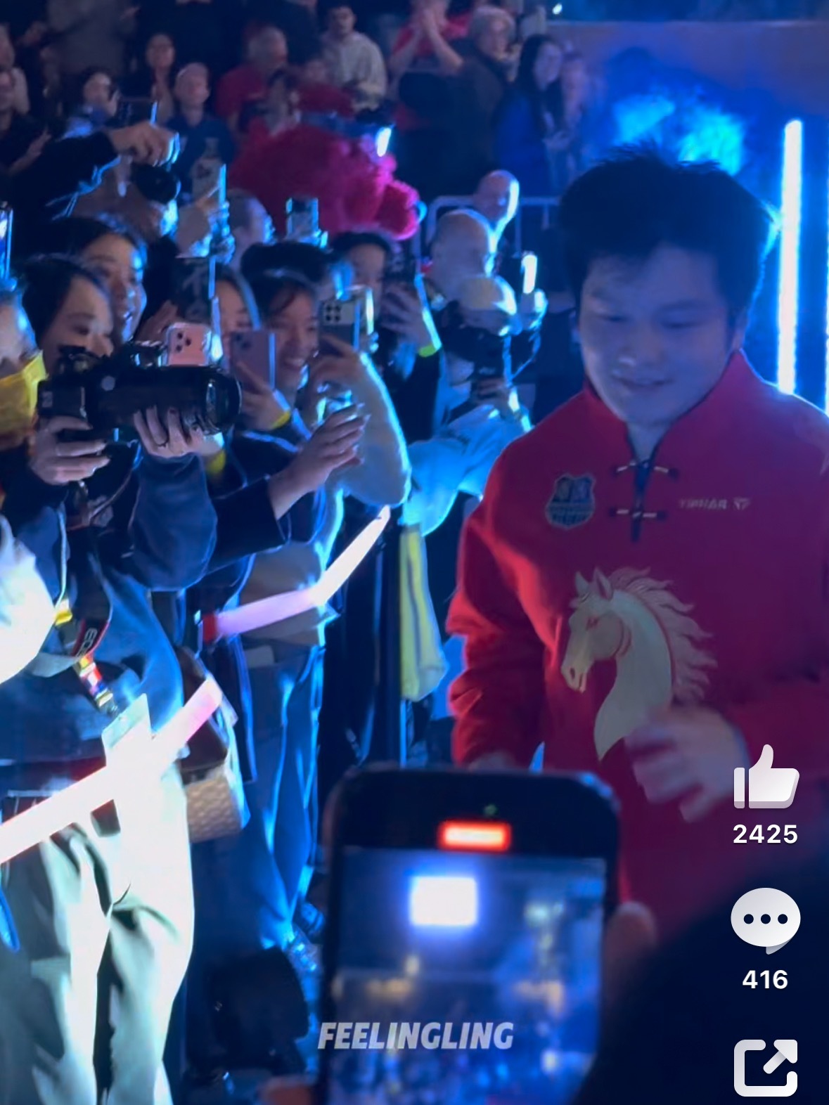 樊振东身穿中国红队服Happy Chinese New Year 红红火火过新年