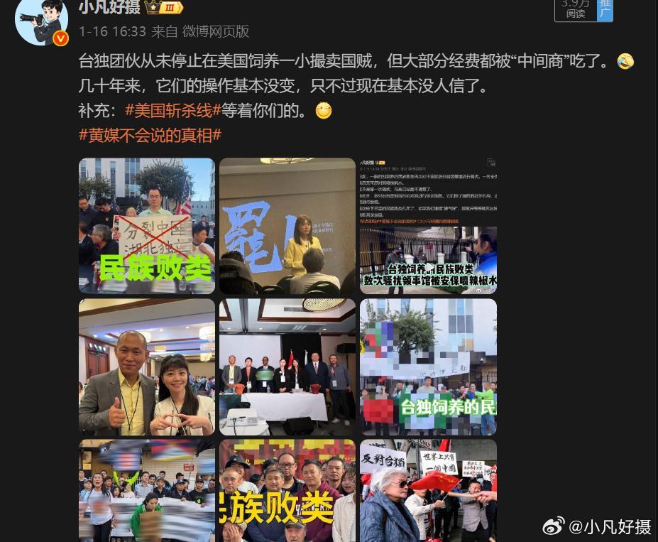 台独团伙随时指挥着“润美殖人”!照片中的这一只来自中国某省的反贼。不过这些殖人的价值很小,除了发帖造谣,就是去我们驻美外交机构搞事。而这些殖人基本都是黑户,如果生病,它们就知道什么叫美国斩杀线 。海外新鲜事黄媒不会说的真相