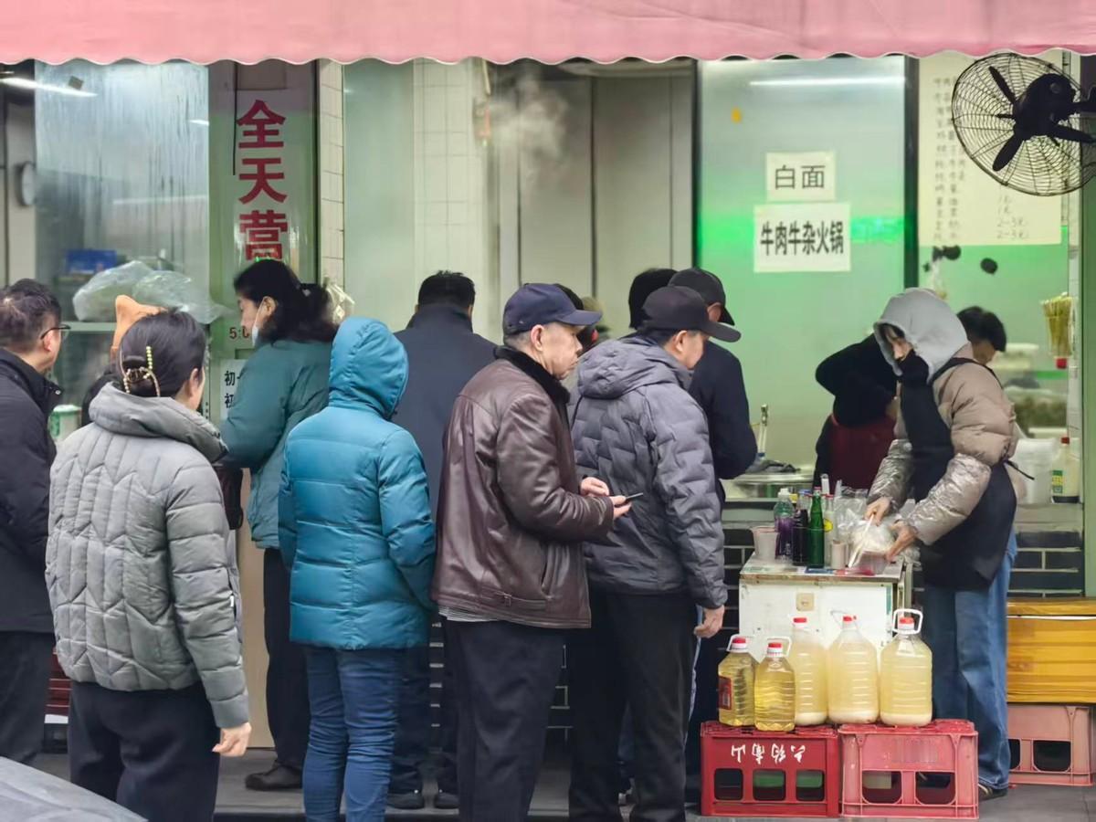 除夕晨雪 赴一碗襄阳牛肉面之约 虽然昨夜风雪交加,漫天白雪漫过汉江,为千年古城襄阳披上一层银纱,7.3公里古城墙覆雪如银,尽显冬日苍茫;2月16日晨寒风凛冽,北风裹挟着余寒扑面而来,气温低至零度,指尖触之皆是凉意,但古城襄阳不少人不顾一年的忙碌,卸下满身疲惫,一大早就急急忙忙起身,裹紧厚重的衣物,踩着未化的积雪,踏着细碎的雪声,朝着街角熟悉的面馆匆匆赶去,生怕错过这碗藏着年味儿与乡愁的襄阳牛肉面。 天未全明,曙色尚薄,街巷里零星的灯火已随面馆的炊烟亮起。灶台上两口大锅热气升腾,一锅红汤醇厚油亮,牛骨与香料经彻夜慢煨,精髓尽融汤中;一锅白汤翻滚冒泡,等着唤醒劲道的碱水面。老板们麻利地忙碌着,抄面、烫芽、浇汤、铺肉,一系列动作行云流水,香气顺着门窗溢出,在风雪中弥漫开来,驱散了冬日的严寒。 面馆内早已座无虚席,熟人们笑着寒暄,畅谈一年的收获与新年的期许。大家捧着粗瓷大碗,看着红亮的牛油浮在汤面,裹着筋道的面条,配上大块酥烂的牛肉,麻、辣、鲜、香在舌尖层层铺展。一口热面入喉,暖意瞬间蔓延至全身,所有的寒冷与疲惫都烟消云散。 这一碗牛肉面,是襄阳人过年的仪式感,寓意着“从头顺到尾”,藏着南北交融的市井烟火,也藏着刻在骨子里的乡愁。风雪挡不住奔赴的脚步,严寒抵不过烟火的温情,在2月16日这特殊的除夕清晨,一碗热气腾腾的襄阳牛肉面,盛满了古城人的欢喜与期盼,也盛满了独属于襄阳的年俗与温情,成为这个除夕最动人的烟火印记。