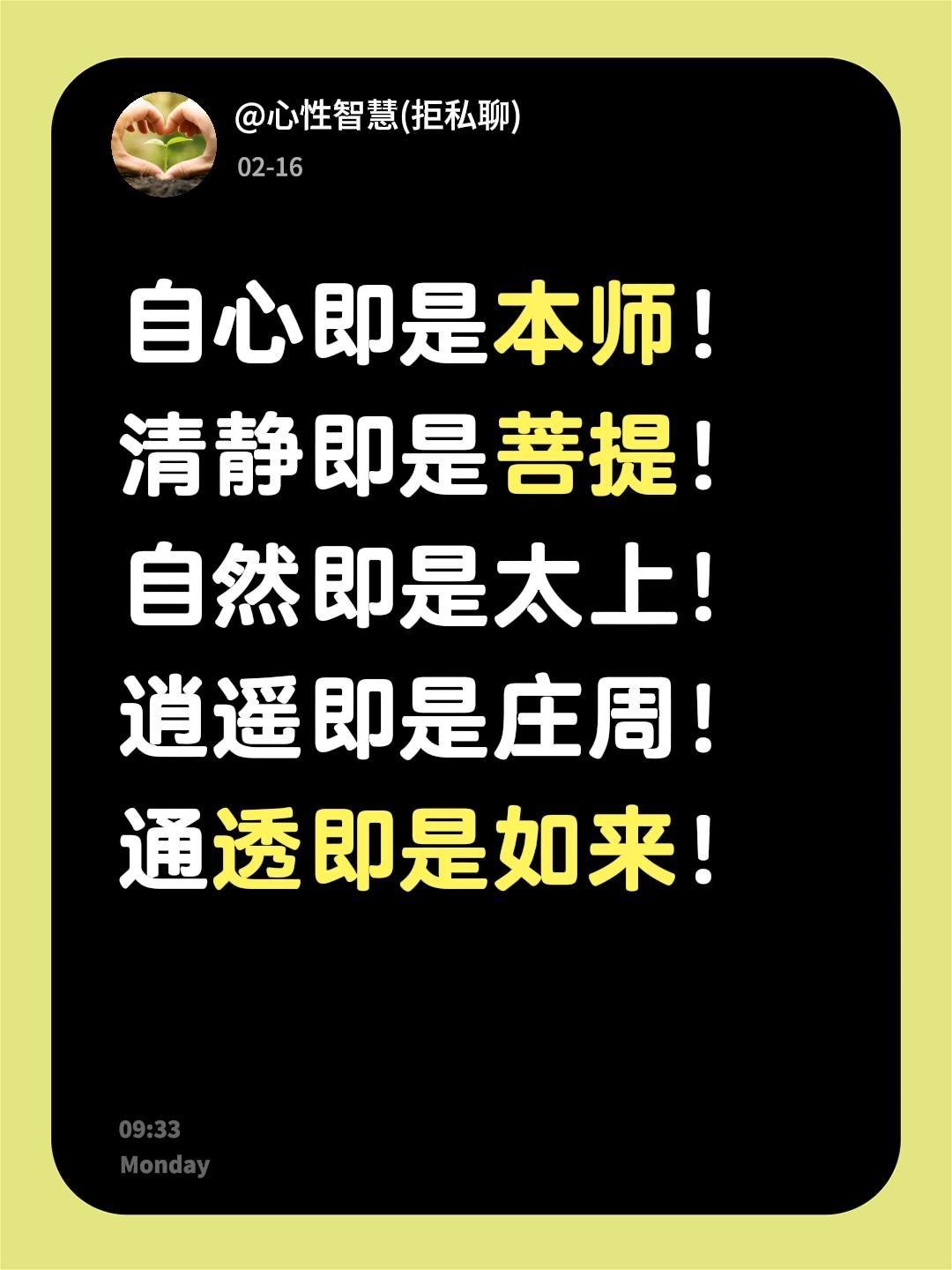 自心即是本师! 清静即是菩提! 自然即是太上! 逍遥即是庄周! 通透即是如来!