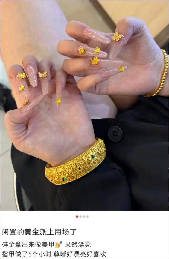 近日,“黄金美甲”在社交平台走红,有网友将价值4万元的金饰剪碎做成“黄金甲”。不少年轻人用闲置黄金改造美甲,手工费600-1500元,引发热议。但也有人担心成本高、易脱落,以及黄金回收合规等问题。