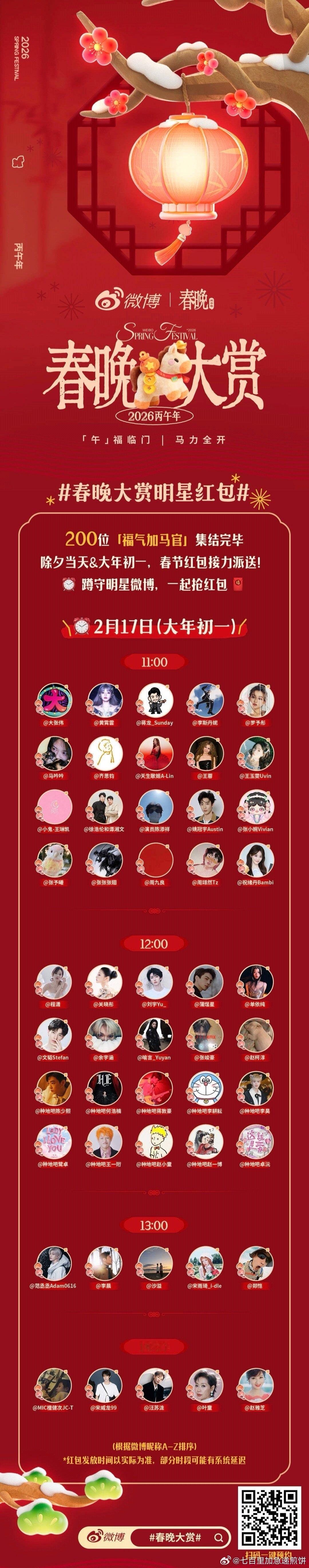 今年的明星发红包名单🈶,除夕和大年初一有200位明星发红包春晚大赏春晚红包