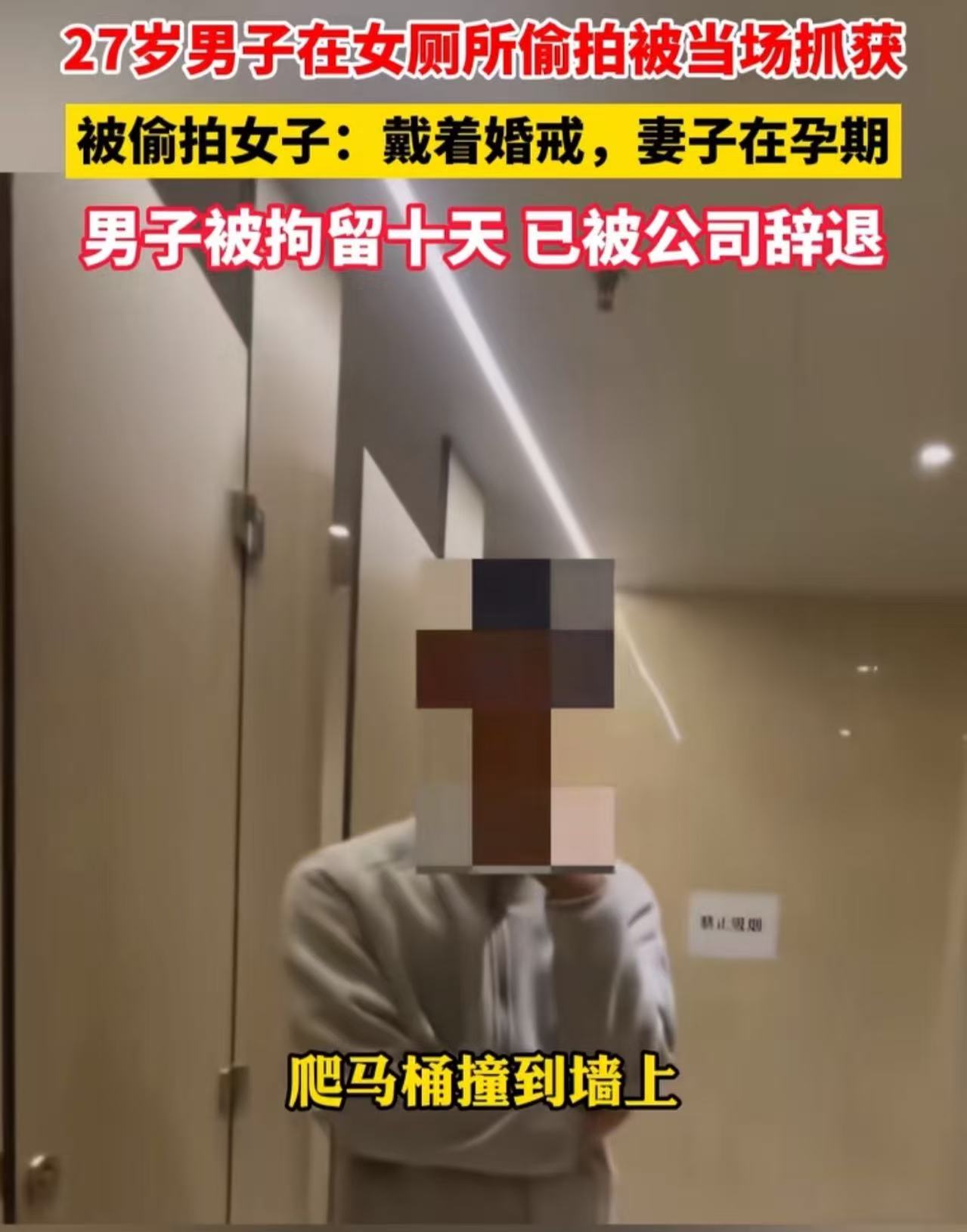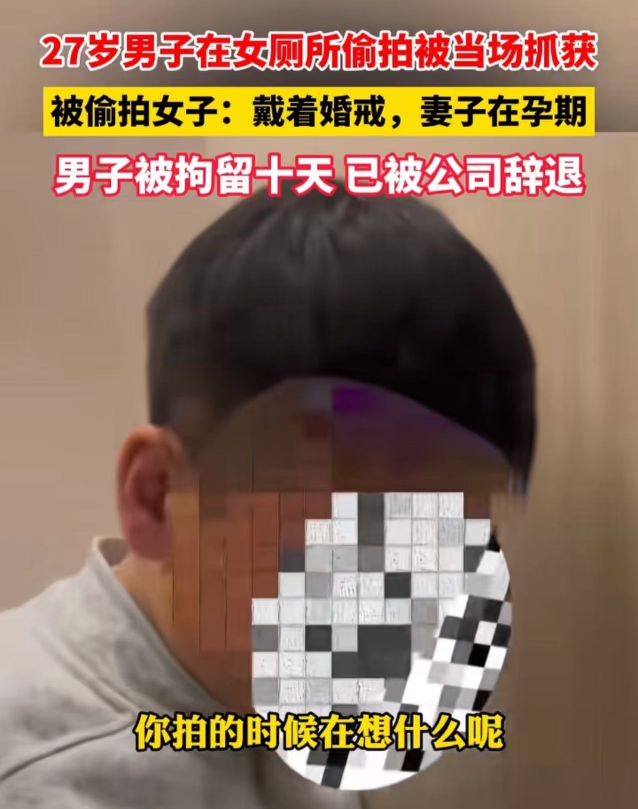 27岁男子在女厕所偷拍被当场抓获,被偷拍女子:他还戴着婚戒,妻子在孕期!网友:最可怜的是他老婆,嫁给这样的男人!