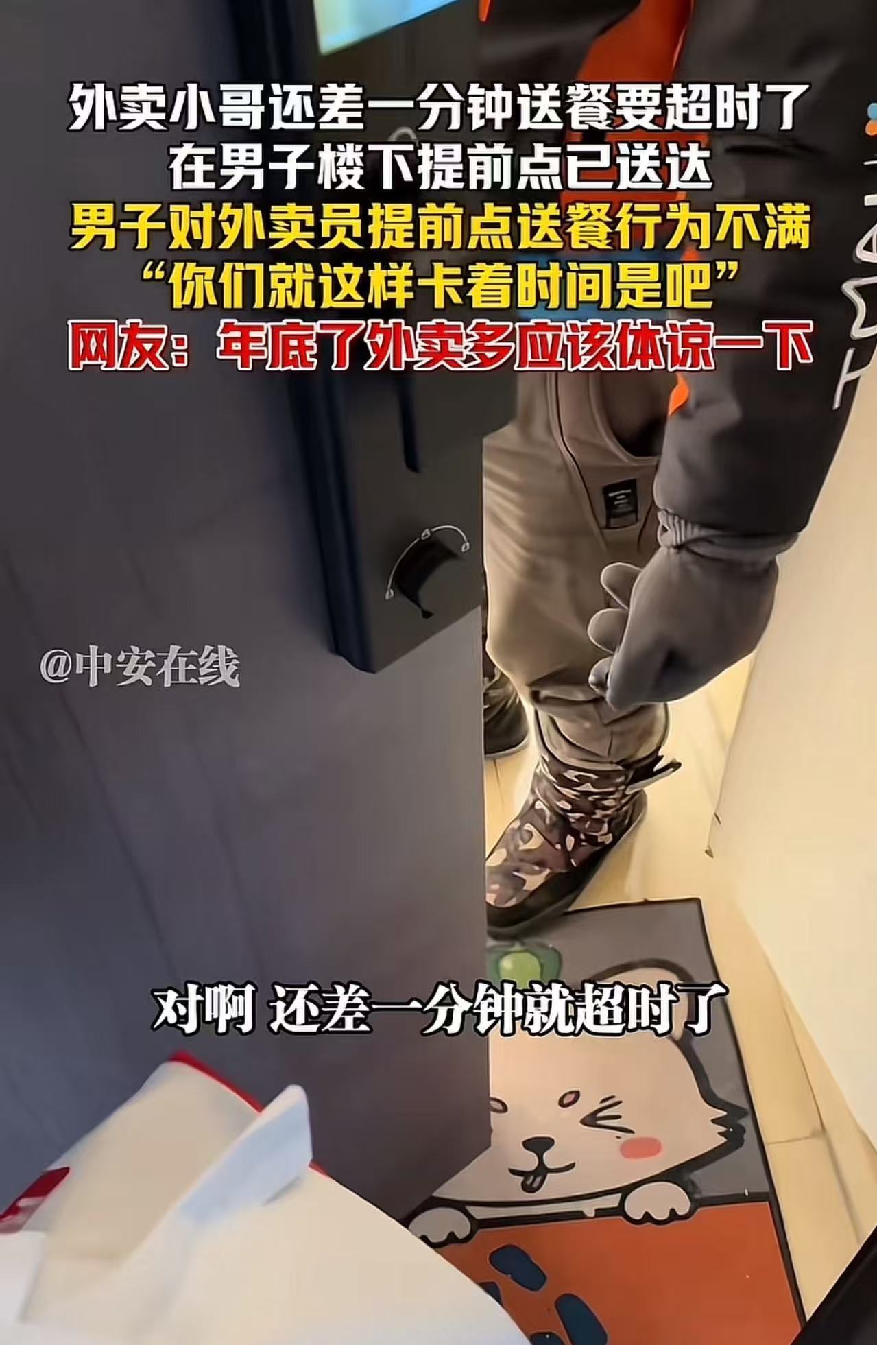 男子站在门口,手里拿着饭,心里却堵得慌。当晚,他把这段经历发到社交平台,配文写道: “我花的是真金白银,买的是平台承诺的‘准时送达’。不是买一个‘系统显示已送达但饭还在路上’的幻觉!今天敢提前1分钟,明天就敢提前5分钟!”