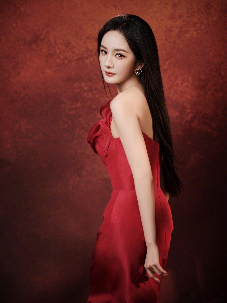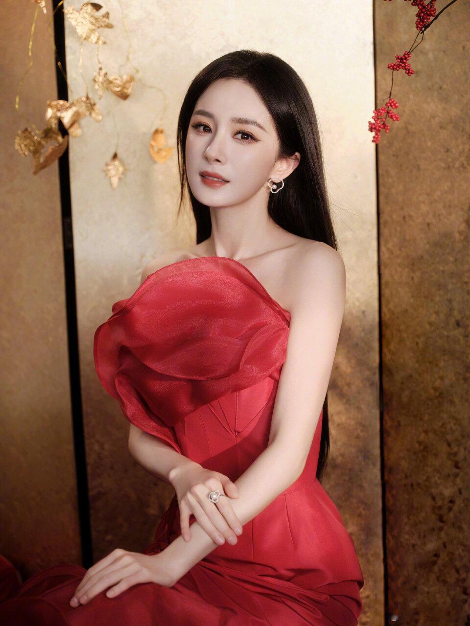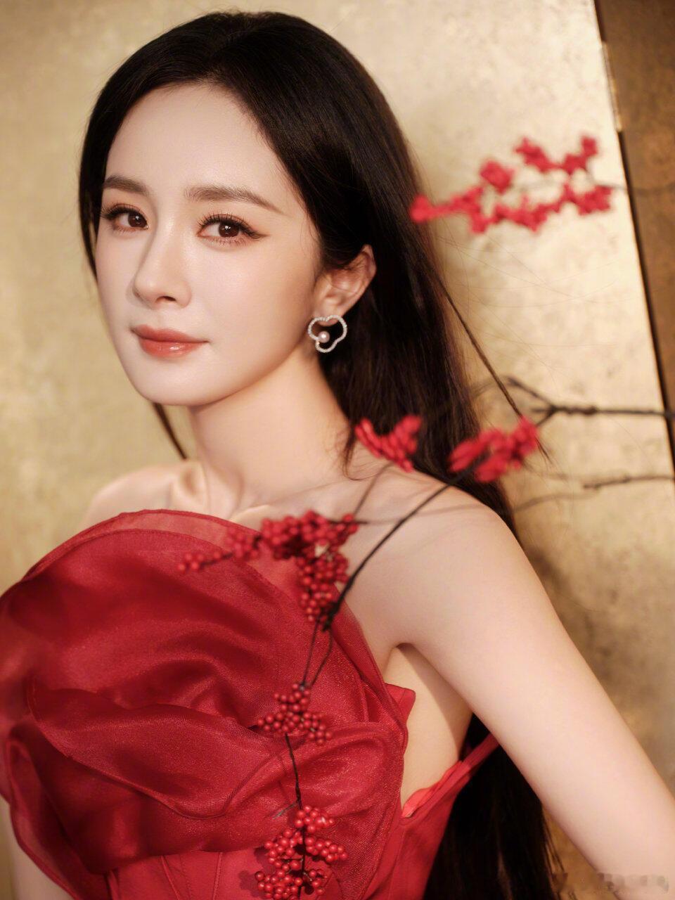 杨幂新春贺岁图,火红热烈的红玫瑰,看到这张脸感觉日子都有盼头了 杨幂贺岁图