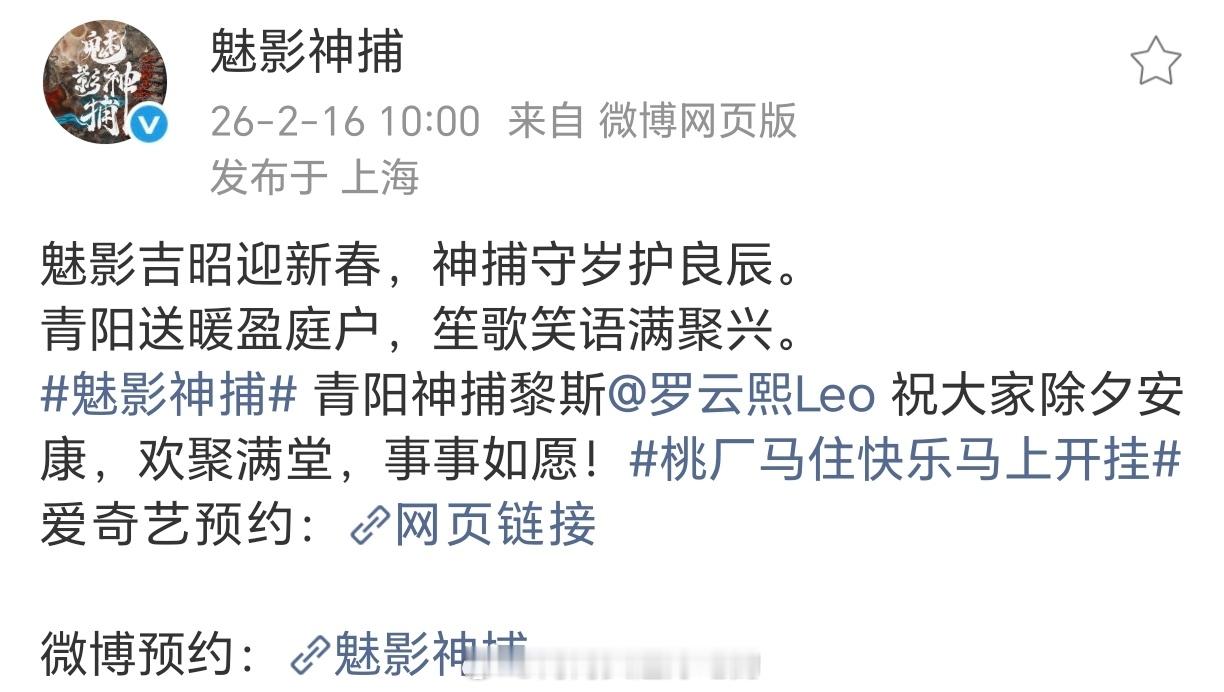 罗云熙《魅影神捕》新春物料,祝大家除夕快乐!期待熙哥魅影神捕黎斯!